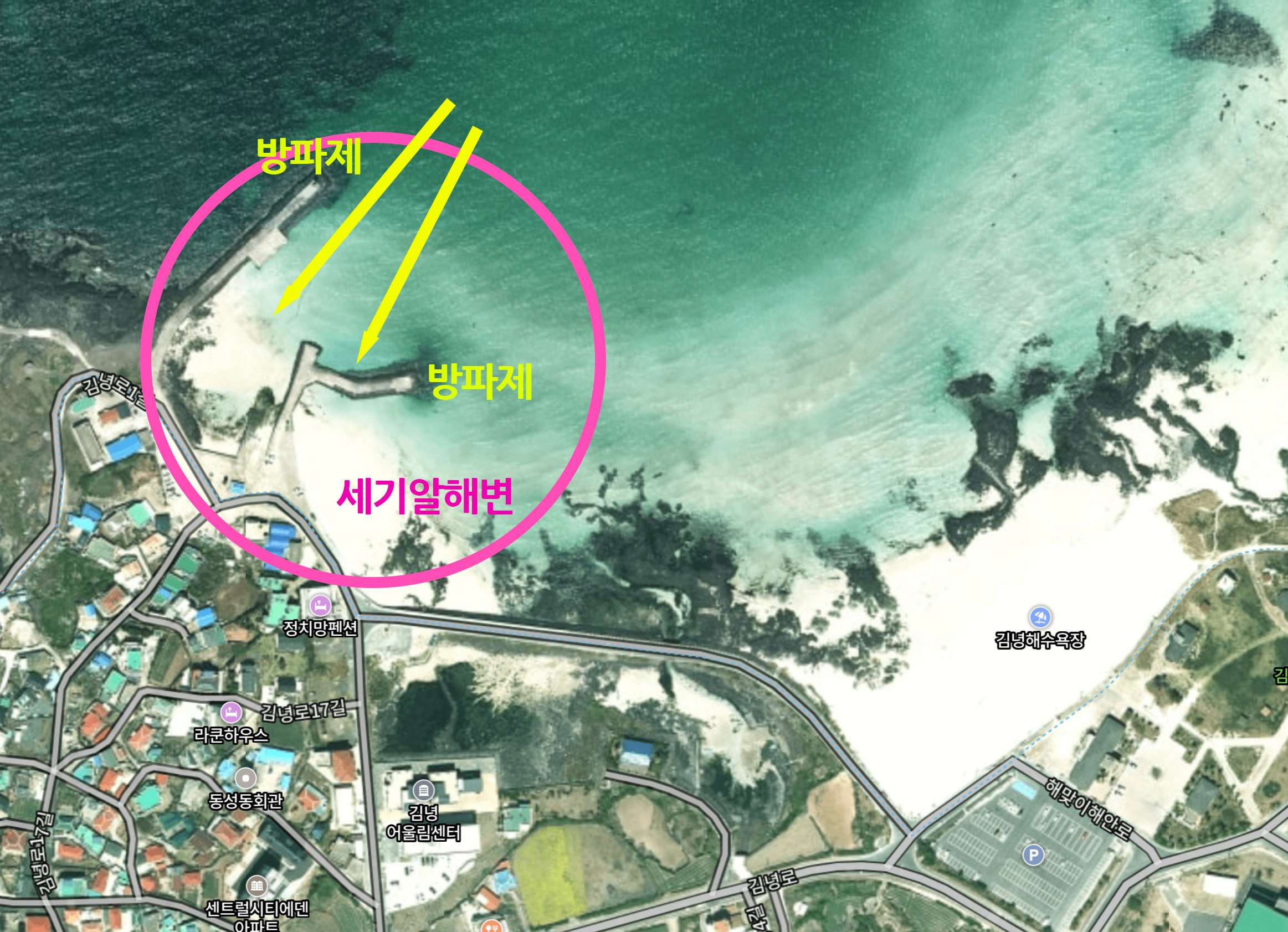 세기알해변은 명칭이 붙은지 2년밖에 되지 않았습니다. 사람이 많이 오게 된 이유도 해변에 이름이 붙으면서 많이 오기 시작한 것 같습니다. 김녕성세기해변을 찾으시는 분들이 세기알해변으로 이동하기도 한 탓도 있는 듯합니다. 카카오맵에서 세기알해변 검색하시면 위치가 나옵니다. 주차는 주변으로 하시면 됩니다. 주차장이 앞에 작게 있지만 해변 주변으로 주차가 가능합니다. 차가 많을 때는 좀 떨어져서 주차를 해도 되지만 멀리대도 1분이면 걸어갑니다.