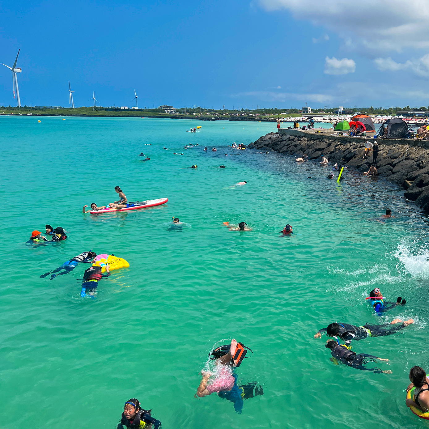 지금 제주는 스노클링으로 핫한 계절을 맞이하고 있습니다. 바다에서 즐길 수 있는 가장 쉬운 방법이 스노클링이 아닐까 싶습니다. 남녀노소 누구나 즐기기에 안전하면서 재미를 더하는 레포츠라고 생각됩니다. 스노클링은 장비도 간단하지만 대여해서 사용하면 되기 때문에 불필요하게 장비를 들고 다닐 필요가 없습니다. 마스크라 물리는 물안경과 잠수시에 호흡을 할 수 있도록 도와주는 스노클이라는 장비만 빌리면 됩니다. 가격도 얼마하지 않기 때문에 여름한철에는 바닷가 주변 마트나 편의점에서도 쉽게 구매할 수 있습니다. 물과 친해질 수 있는 가장 쉬운 방법입니다. 수영을 못해도 할 수 있습니다. 구명조끼를 입으면 발이 닿지 않는 바다에서도 안전하게 떠 있을 수도 있습니다.