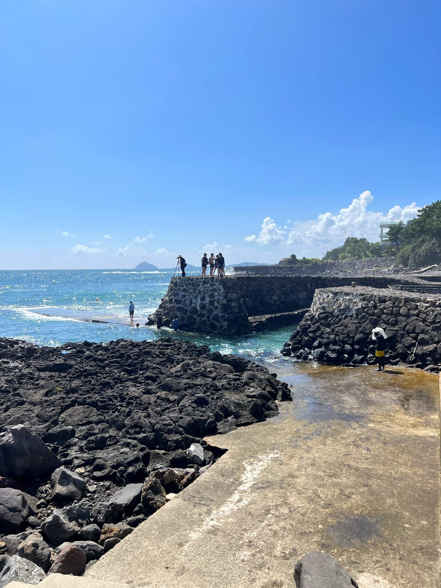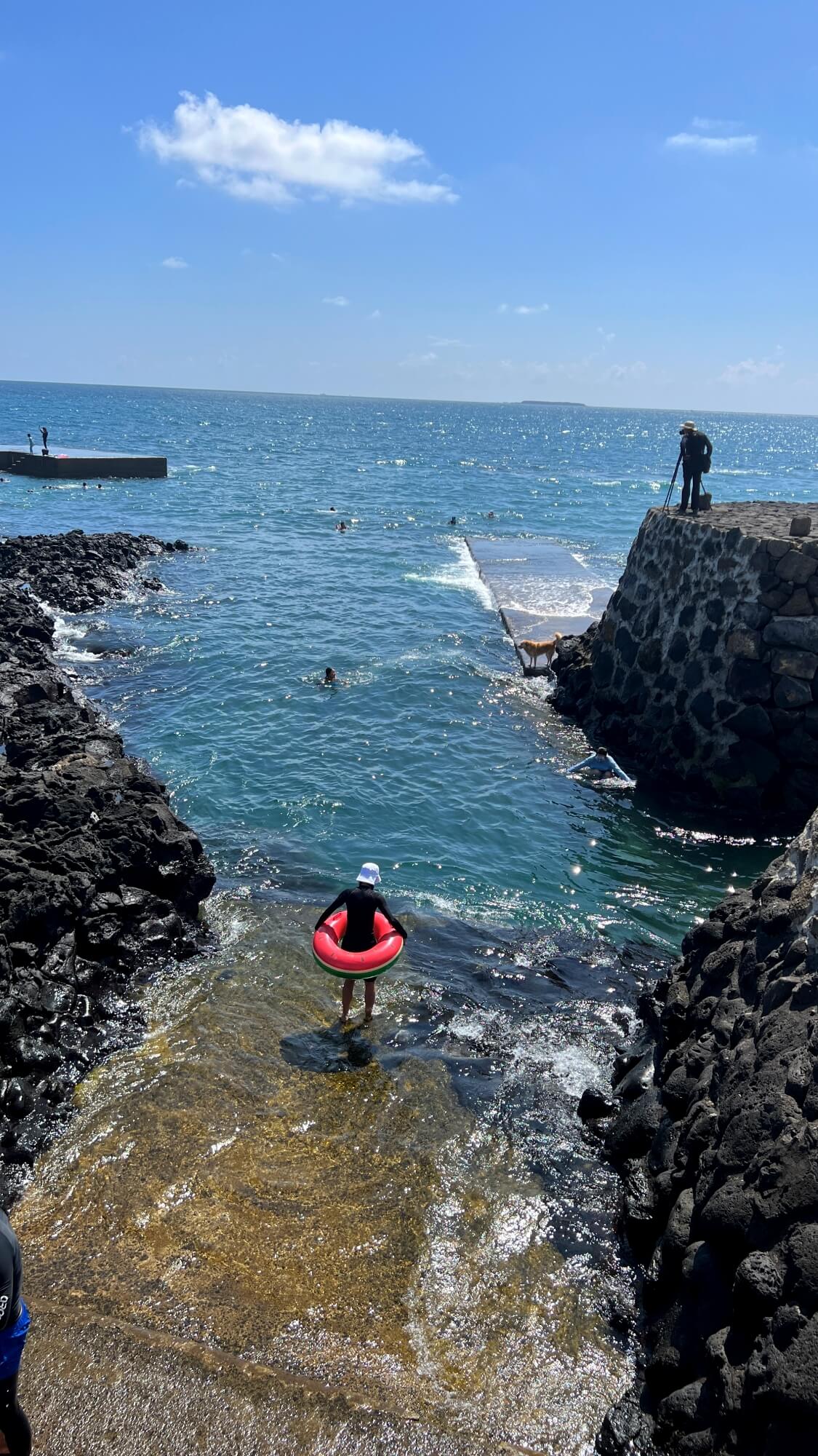 마지막으로 많은 사람들이 몰려 있는 방파제 끝입니다. 스노클링하는 사람들 튜브를 타고 즐기는 사람들 다이빙하는 사람들 모두가 모여 있는 가장 핫플인 곳이었습니다. 안전요원이 따로 없고 안전 라인이 없어 자칫 위험요소가 있어보입니다. 바다의 깊이도 가늠하기 어려운데 모두 잘 알아서 수영하고 있는 거겠죠?