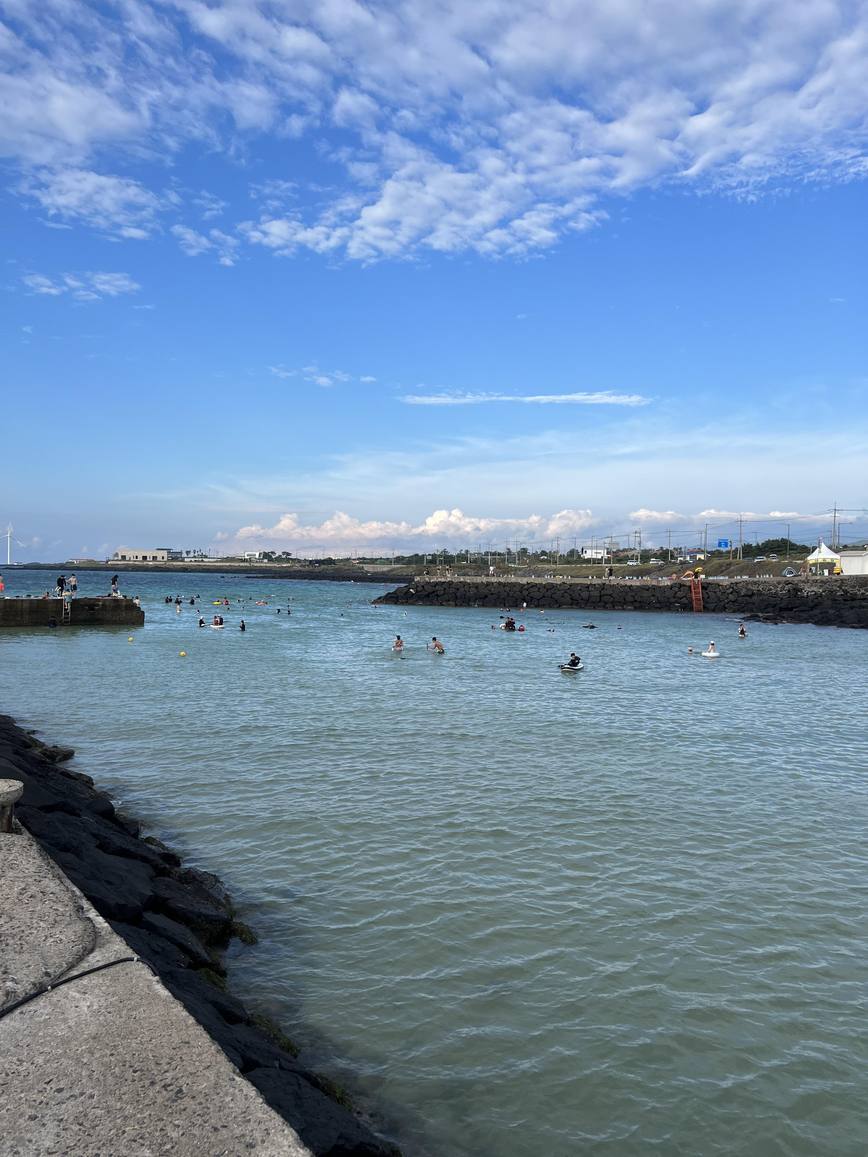 광활한 바다와 이어지는 바다수영장, 반듯하게 만들어진 넓은 포구는 마치 대형수영장, 아니 워터파크 같은 느낌이 들었습니다. 스노클링으로도 많이 한다는 판포포구에 한 번 가보고 싶었습니다. 한경면 판포리에 위치한 판포포구, 요즘은 포구에서 수영하는 사람들이 많이 늘어난 것 같습니다. 제가 사는 동네 근처 김녕포구에도 요즘 엄청난 인파로 수영할 틈이 없을 정도니까요.