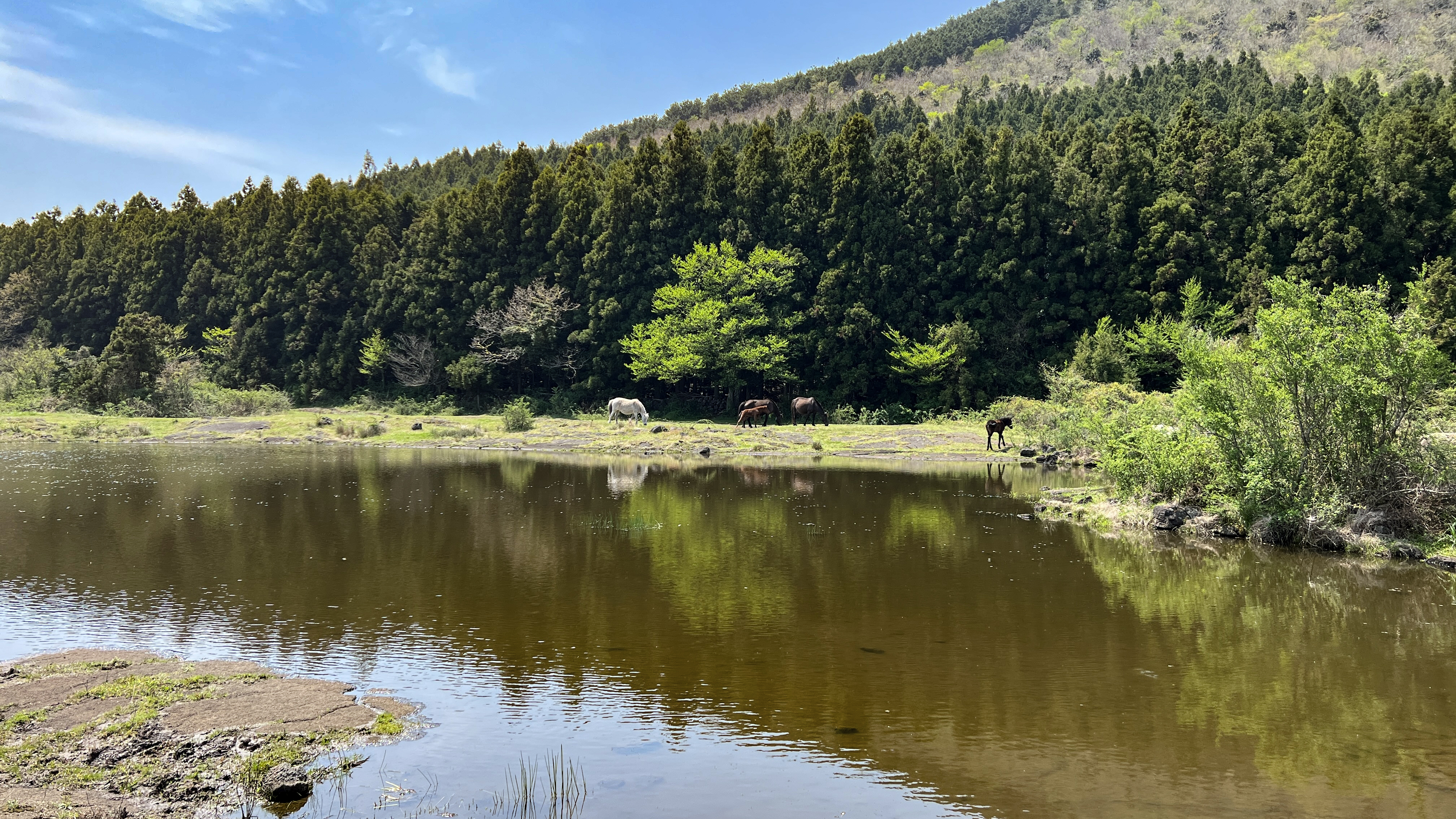 아무나 들어갈 수 없는 이곳에는 비밀의 연못이 하나 있습니다. 바로 벵디못이라는 아름다운 연못입니다. 제주는 물이 고여있기가 쉽지 않은 지형이라 이렇게 연못을 이루기가 쉽지 않습니다. 그런 이곳은 말들도 함께 풀을 뜯으며 물을 마시기도 하고 아주 평화로운 광경을 마주할 수 있는 곳입니다. 이 벵디못은 오프로드 투어 맨 마지막 종착지입니다. 이 곳에 내려 잠시동안 포토타임을 가집니다. 날이 좋으면 이 아름다운 연못이 정말 해외 부럽지 않은 진정한 제주의 모습을 느끼고 가실 수 있답니다. 말들이 자유롭게 방목되어 있어 풀을 뜯고 있으며 바람이 없는 날에는 오름의 반영이 아름답게 반사되어 그 모습을 더욱 아름답게 비춰준답니다.