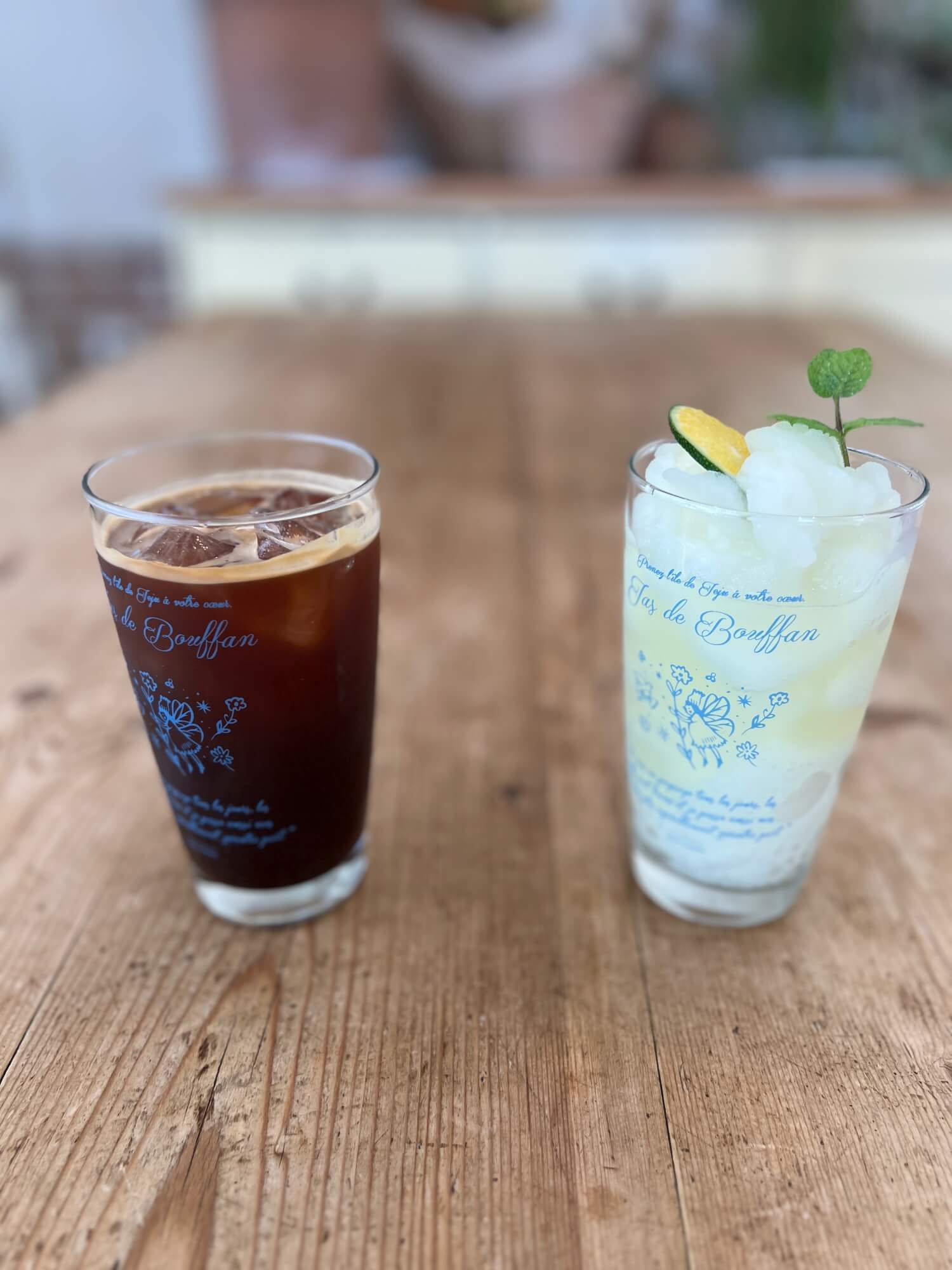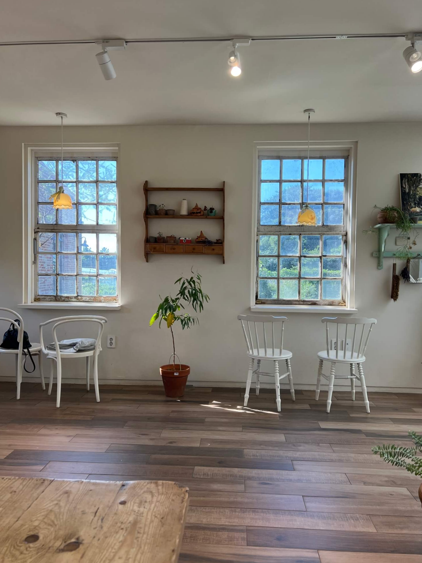카페는 두 개의 동으로 되있습니다. 그리고 돌창고를 리모델링하여 전시 공간으로도 이용하고 있는 건물도 하나 더 있답니다. 빨간지붕의 건물은 음료를 주문하는 곳이고 유리로 되어 있는 온실 같은 공간은 손님들이 음료를 마실 수 있는 공간입니다. 인테리어에 많이 신경을 썼다는 것을 볼 수 있었는데요.