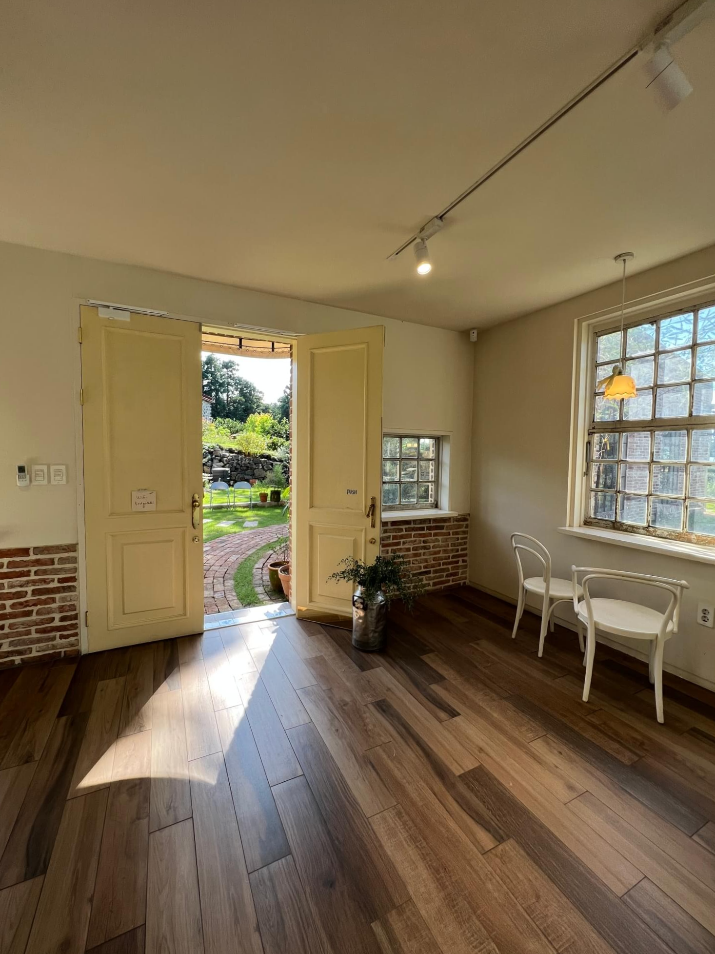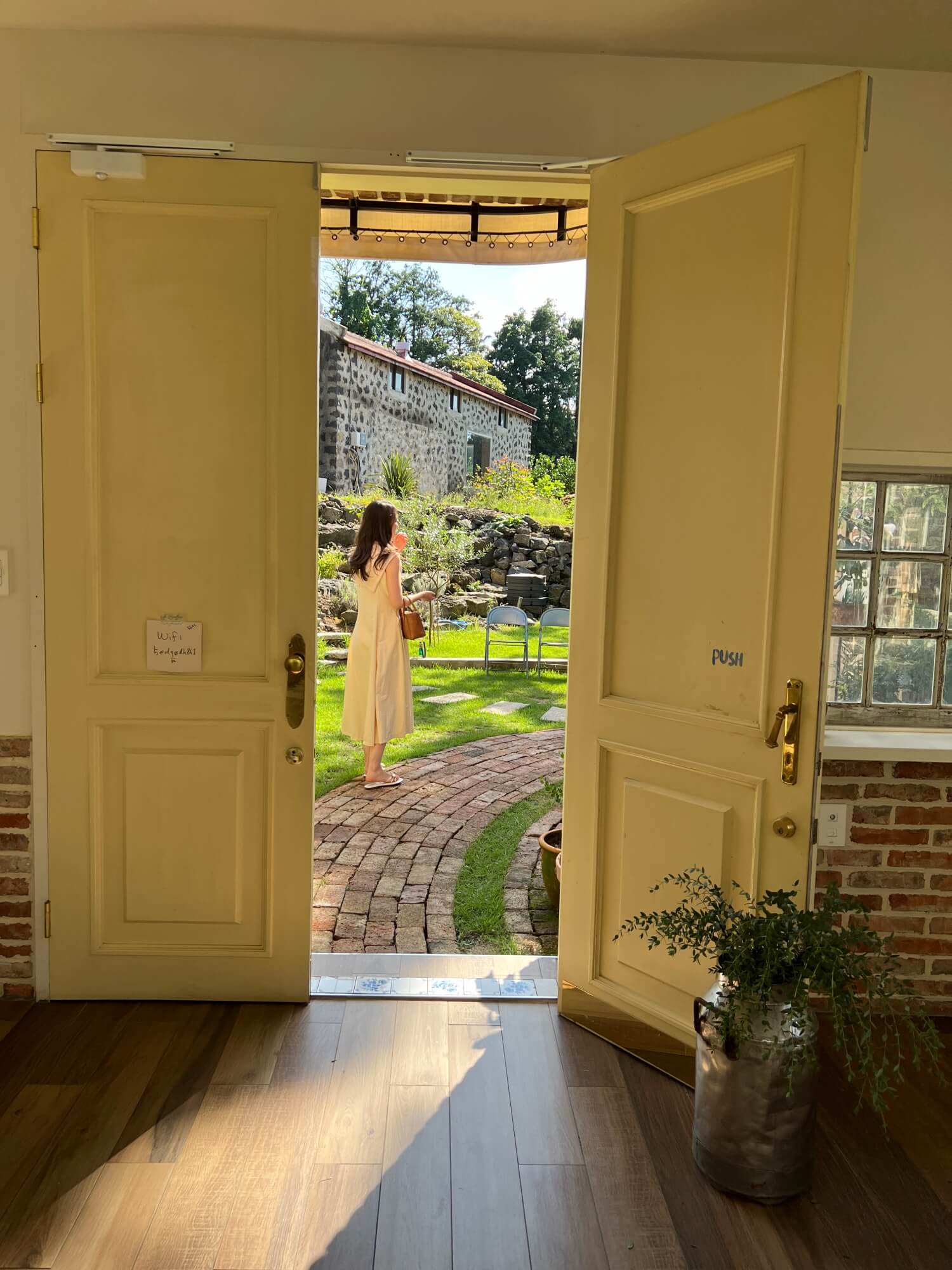 유럽풍 감성의 빈티지한 대문과 창밖으로 들어오는 자연의 풍광은 그야말로 자연 속 아름다움이 그대로 살아있어 더욱 예뻐 보이는 공간입니다.