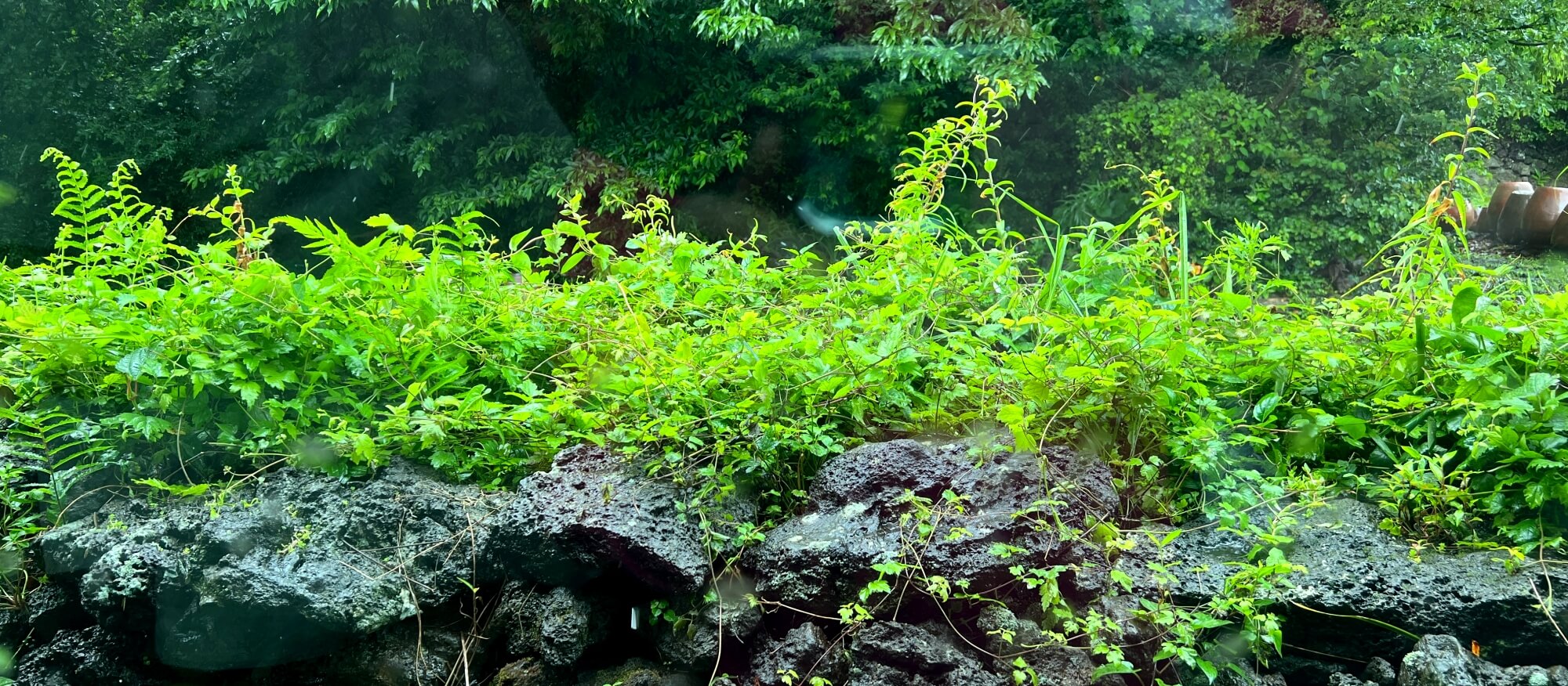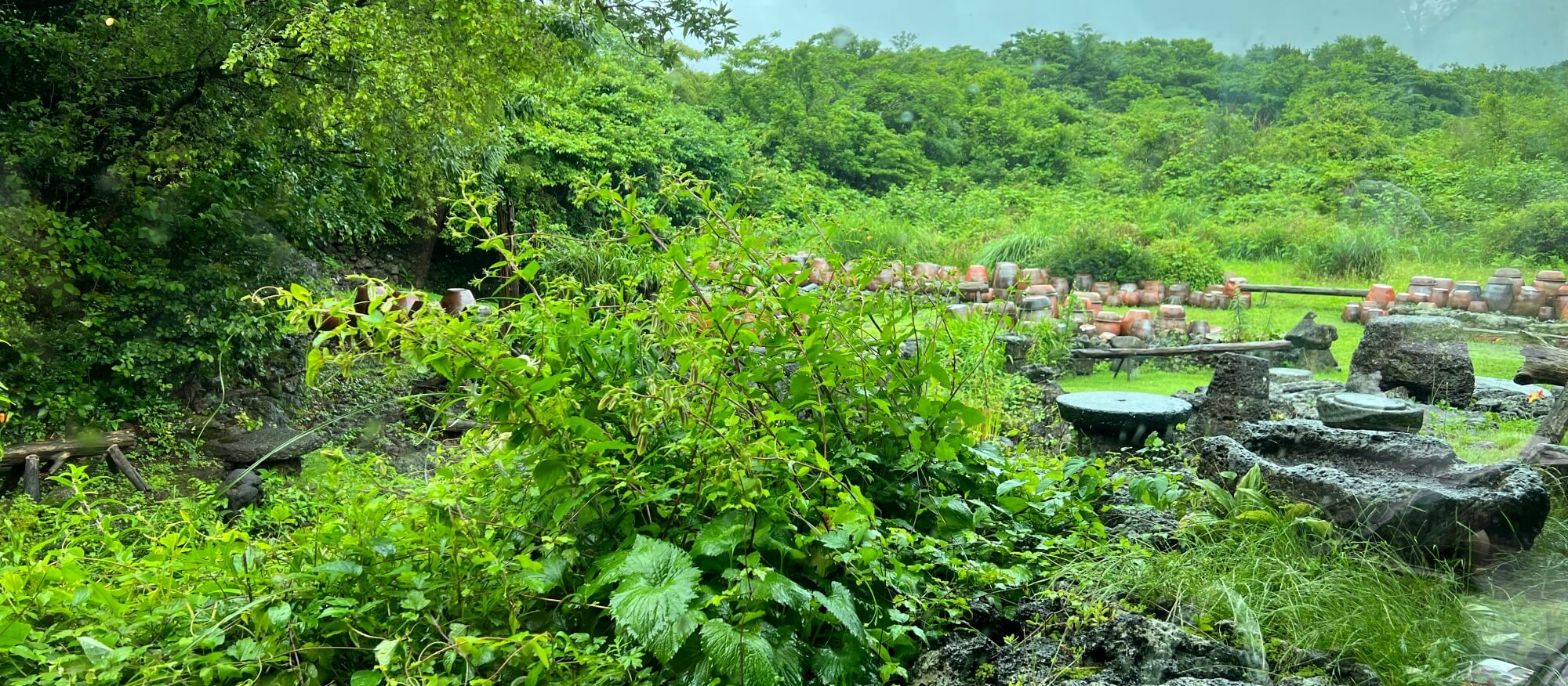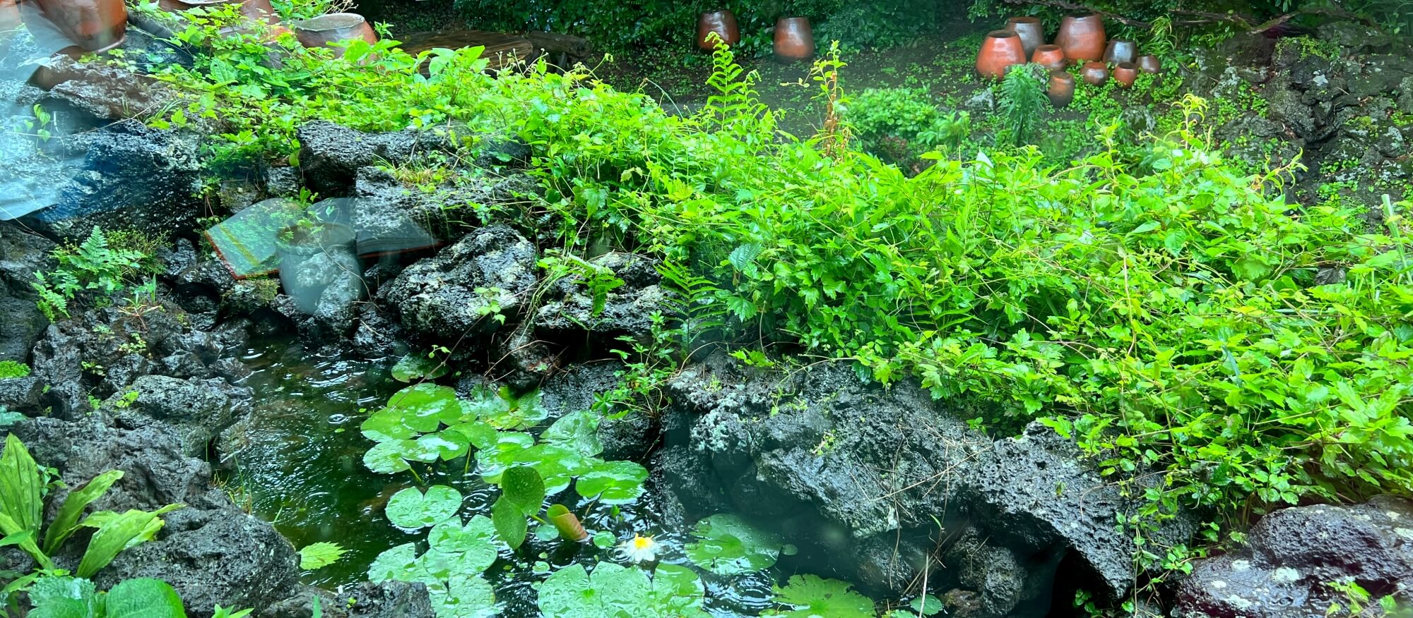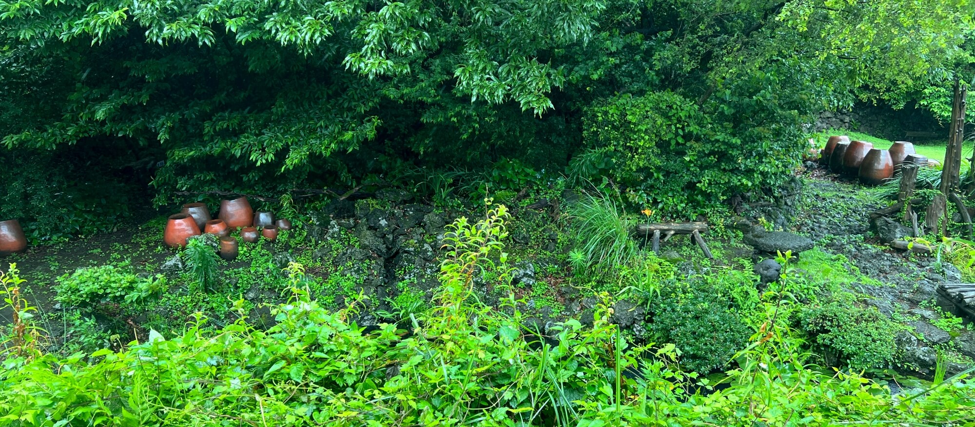 창문 밖으로는 작은 연못도 있고 그 뒤로는 영구 숲이 있어 정말 자연속에 들어와 있는 듯한 감동을 느낄 수 있는 곳입니다. 항아리도 많이 모아놓으셨고, 예전부터도 있었던건데 그대로 있네요, 밖으로 나가면 아기자기한 정원도 만날 수 있지만 비가내려서 나가지는 못했어요. 오히려 이 곳은 비내리는 날 더욱 운치있게 바라볼 수 있는 분위기 있는 곳인 것 같습니다.