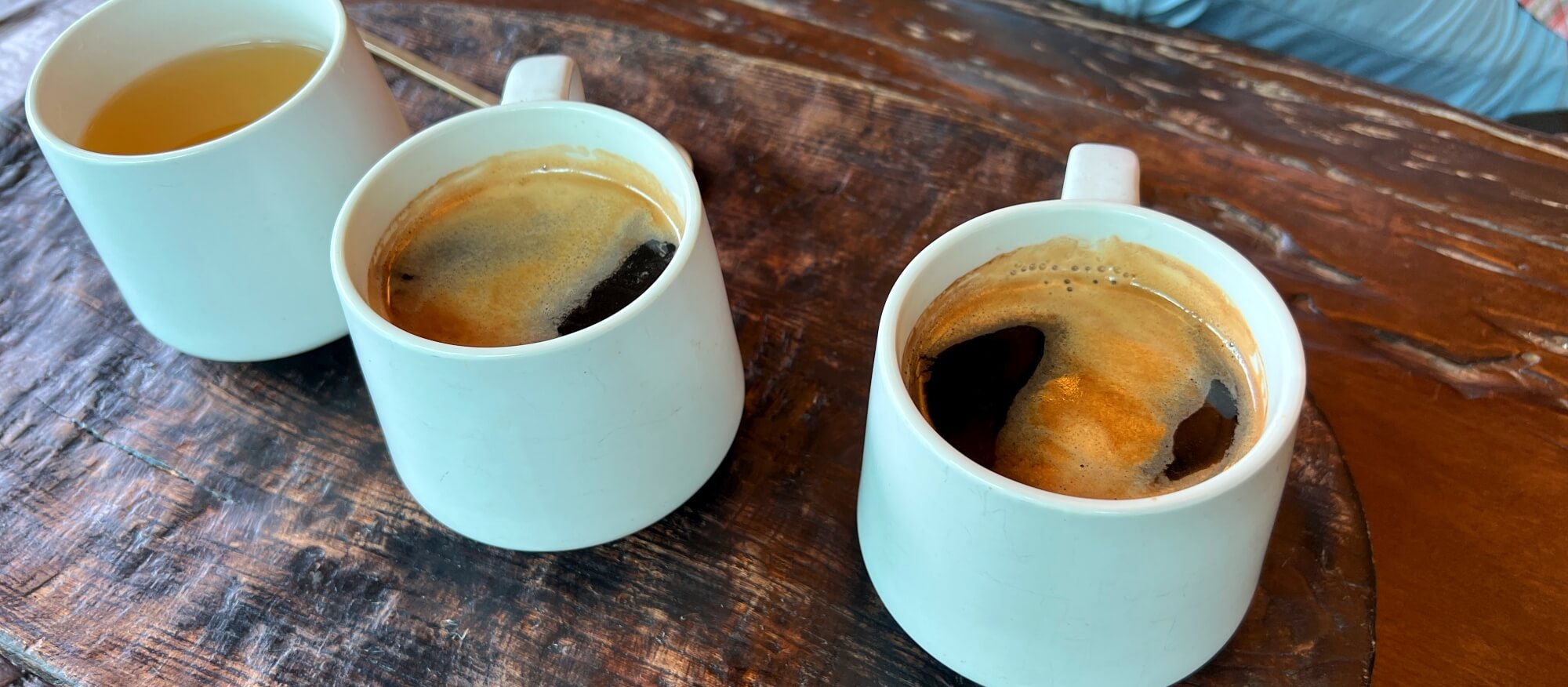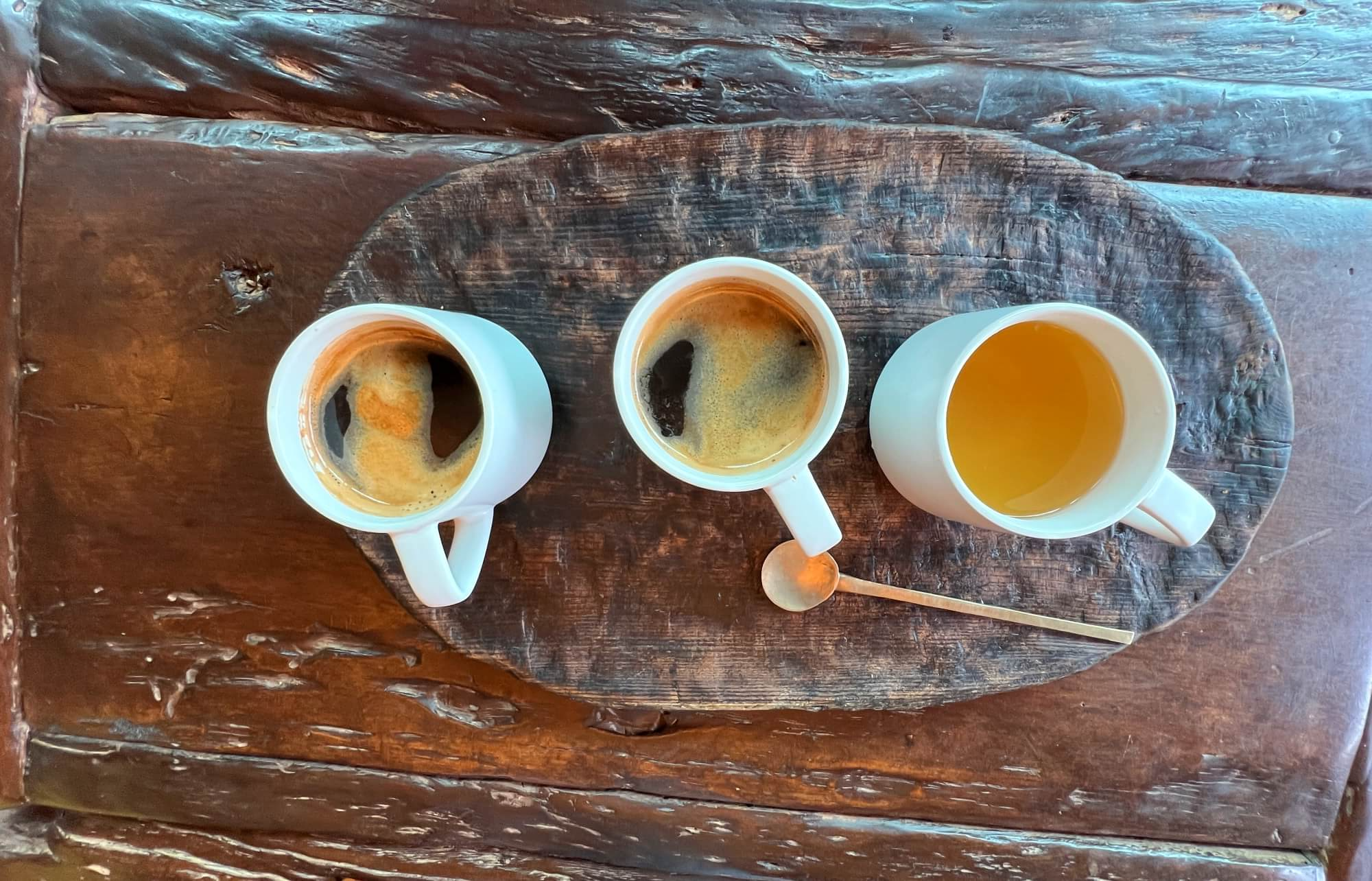음료가 나왔고 음료를 받친 쟁반도 고재로 만들어 테이블과 조화를 이루고 있답니다. 저는 야원 사장님이 이렇게 바리스타까지 하고 계실 줄은 정말 몰랐어요. 연세가 좀 있으신 분이시라서요. 커피도 참 맛있게 잘 내려주셨답니다.