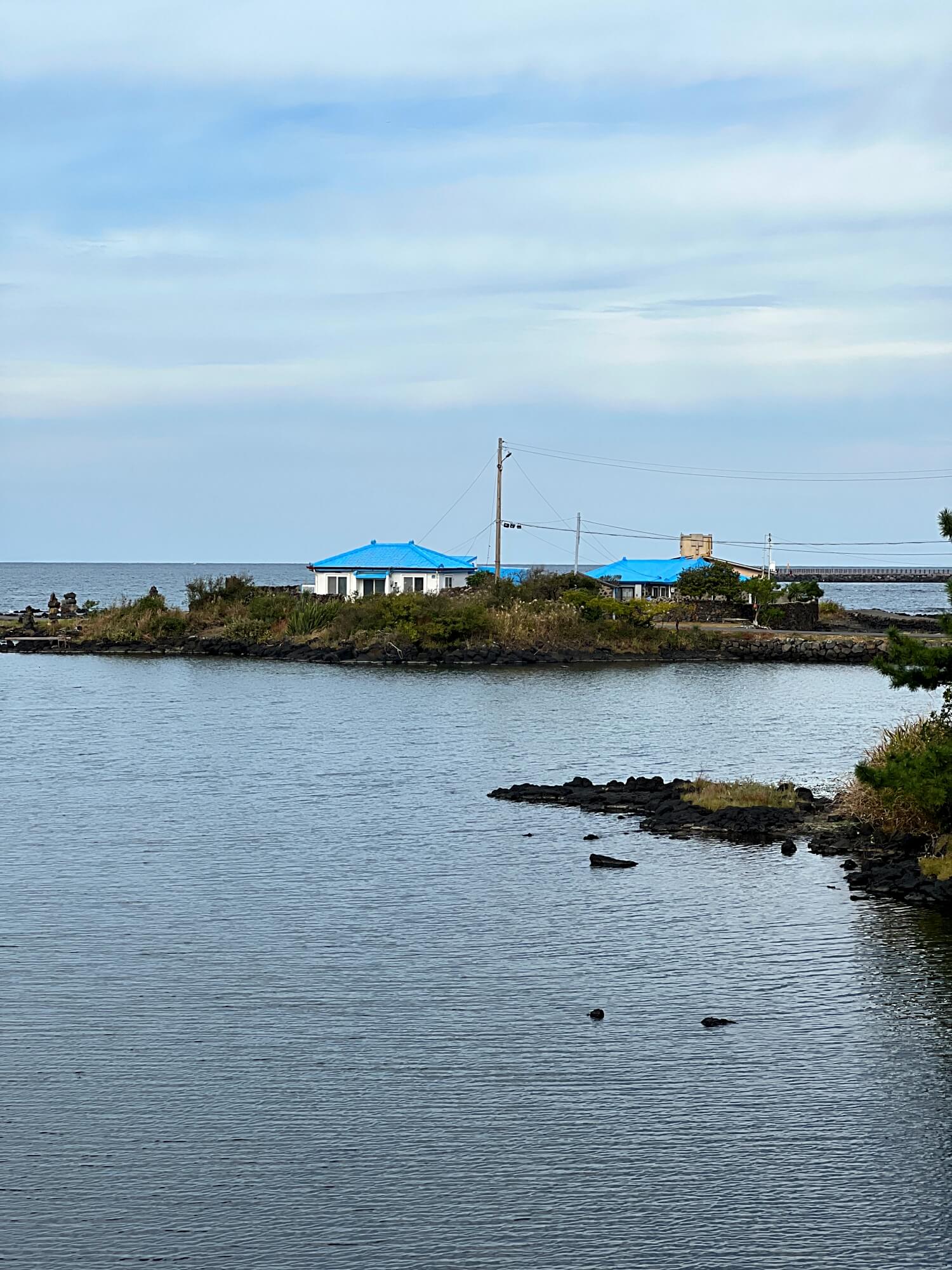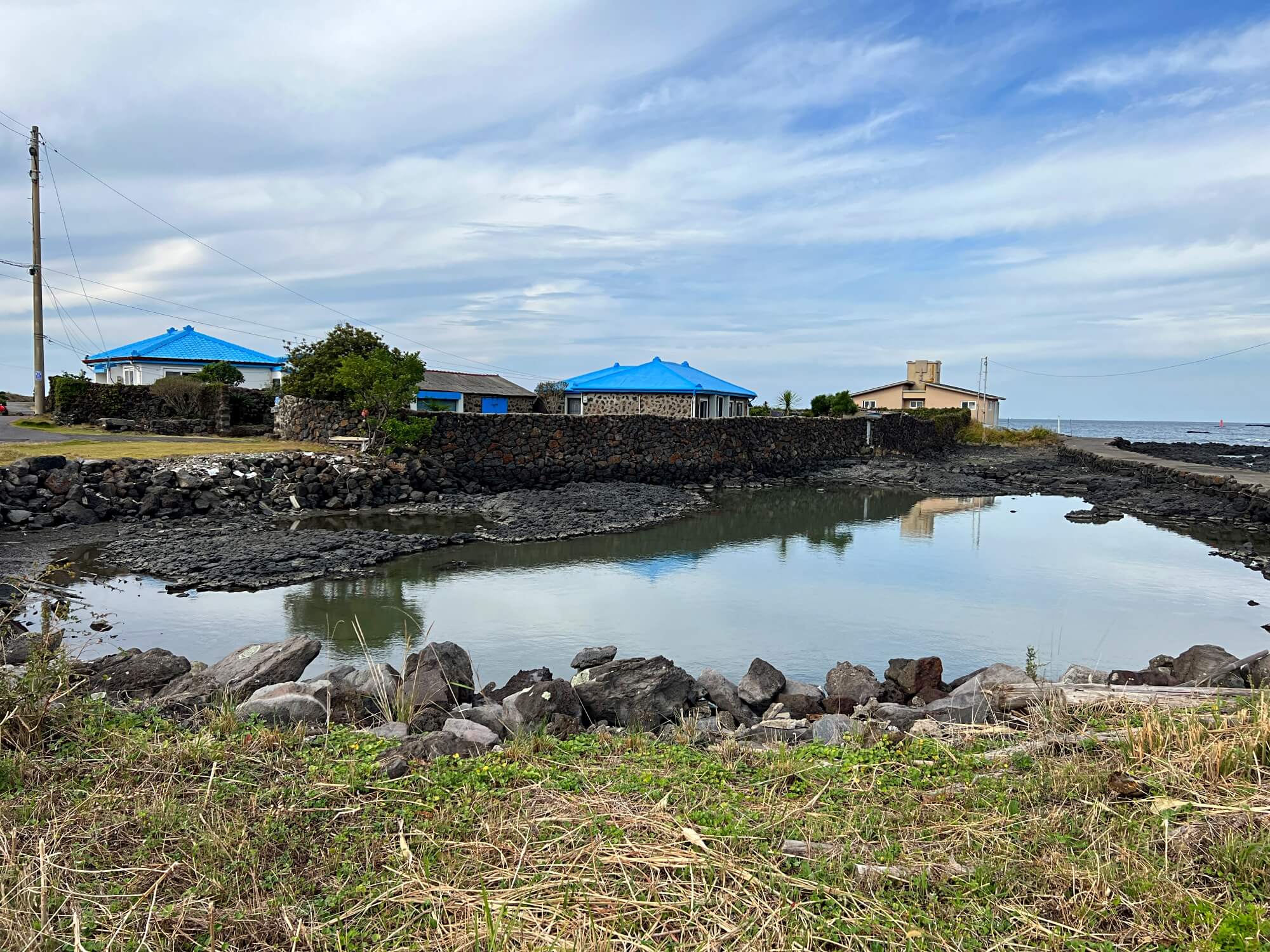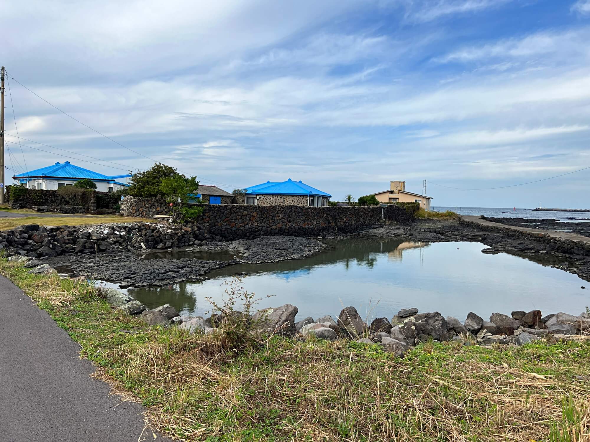 집 주변이 모두 바다입니다. 그래서 바다위에 집이라 예전부터 불리웠나 봐요. 개인이 사는 집으로 보였는데 굉장히 관리가 잘되고 있는 집처럼 보였습니다. 방파제와 바닷길이 있어 파도의 위험은 없어보였어요. 바람 많은 제주에서 이렇게 단단하게 잘 유지하고 있다는 것이 대단해 보였습니다.