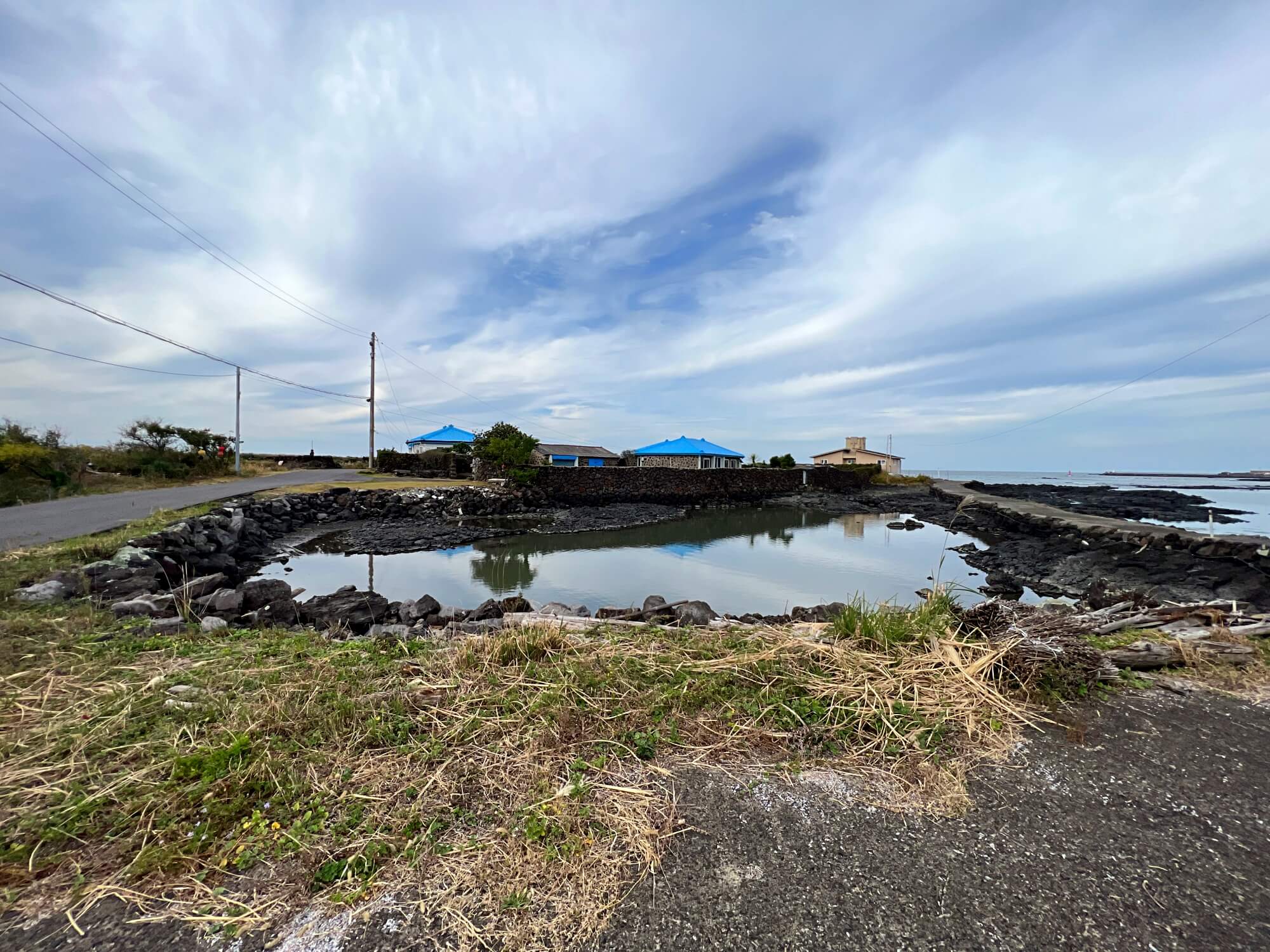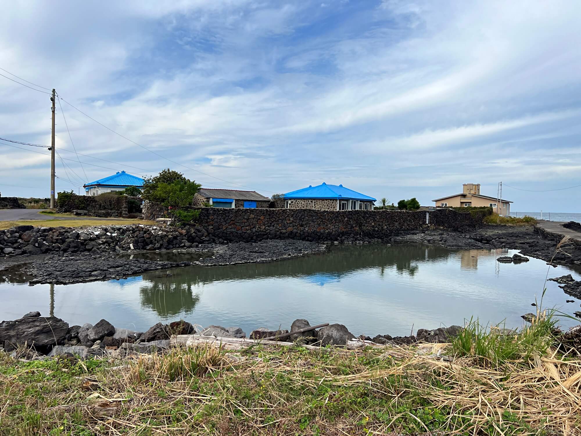 집 주변이 모두 바다입니다. 그래서 바다위에 집이라 예전부터 불리웠나 봐요. 개인이 사는 집으로 보였는데 굉장히 관리가 잘되고 있는 집처럼 보였습니다. 방파제와 바닷길이 있어 파도의 위험은 없어보였어요. 바람 많은 제주에서 이렇게 단단하게 잘 유지하고 있다는 것이 대단해 보였습니다.