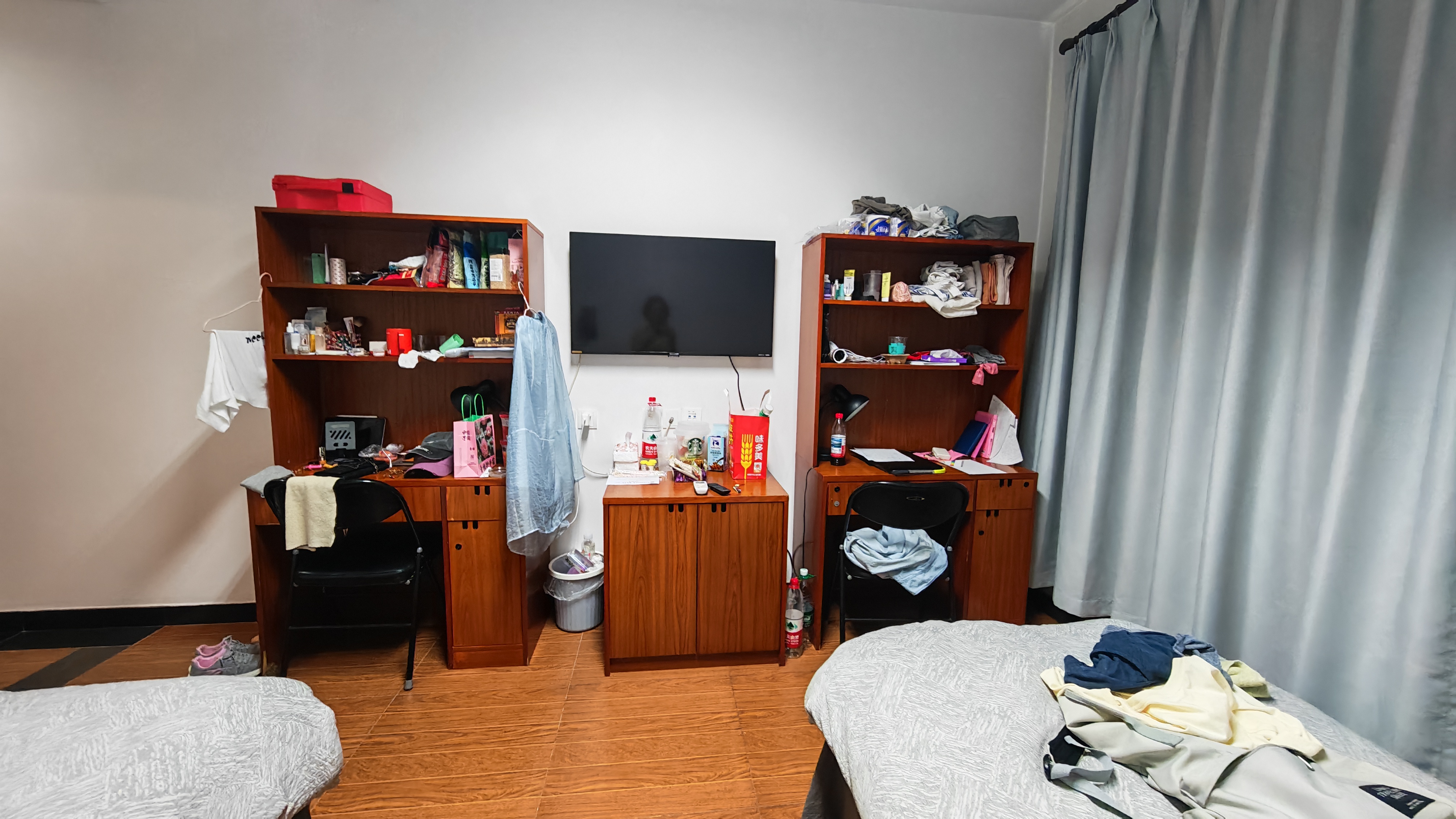 2인실로 신청해서 이번에는 룸메이트가 생겼습니다. 대련에 있을 때 1인실도 좋았지만 2인실이라 동지가 있으니 그것도 나쁘지 않더라구요. 기숙사라서 방 내에 없는 것이 많았습니다. 취사 불가에 냉장고도 없었어서 많이 불편했습니다. 하물며 전기포트조차 없어 뜨거운 물 하나 받기 위해 새벽마다 5층까지 물받으러 왔다갔다하는 수고로움이 있었답니다. 그래도 에어컨 하나는 빵빵하게 나와서 시원하게 지낼 수 있었습니다.