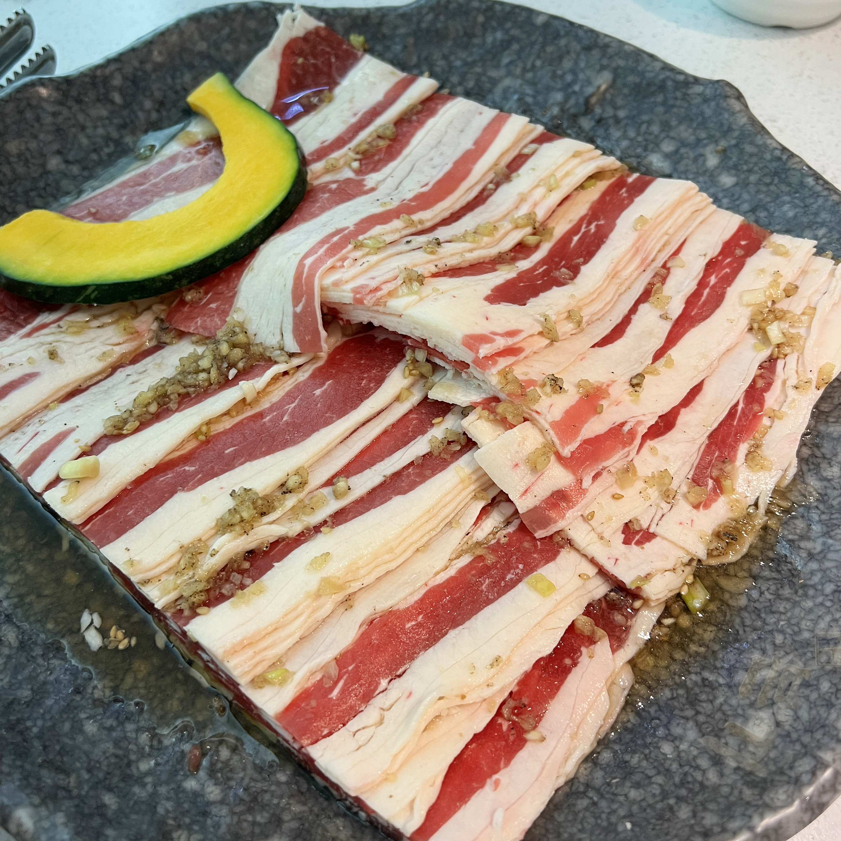 본가 모둠 메뉴에는 소고기, 전복, 새우 등을 맛볼 수 있는데요, 기본이 4인이라서 가격은 79,000원이었습니다. 나쁘진 않은 가격이지만 세식구가 먹기엔 양이 좀 많아 보였습니다. 우삼겹은 1인분에 17,000원 저희는 셋이서 4인분가량 먹었어요, 예전엔 1인분이 보통 200g 이었지만 요즘엔 대부분 150g으로 책정을 많이 하는 듯합니다. 딱 한근을 먹고 왔네요.