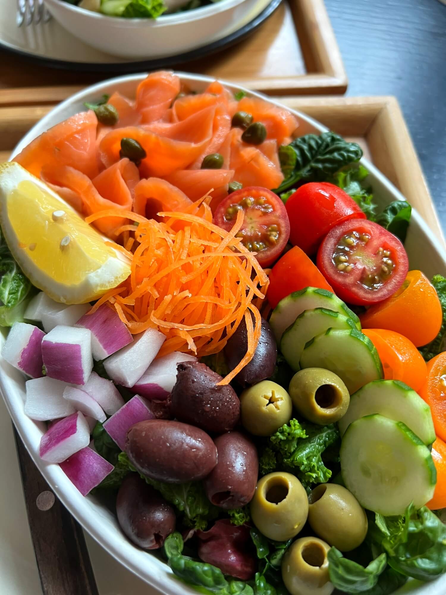 샐러드는 연어샐러드를 좀 더 추천드리고 싶습니다.