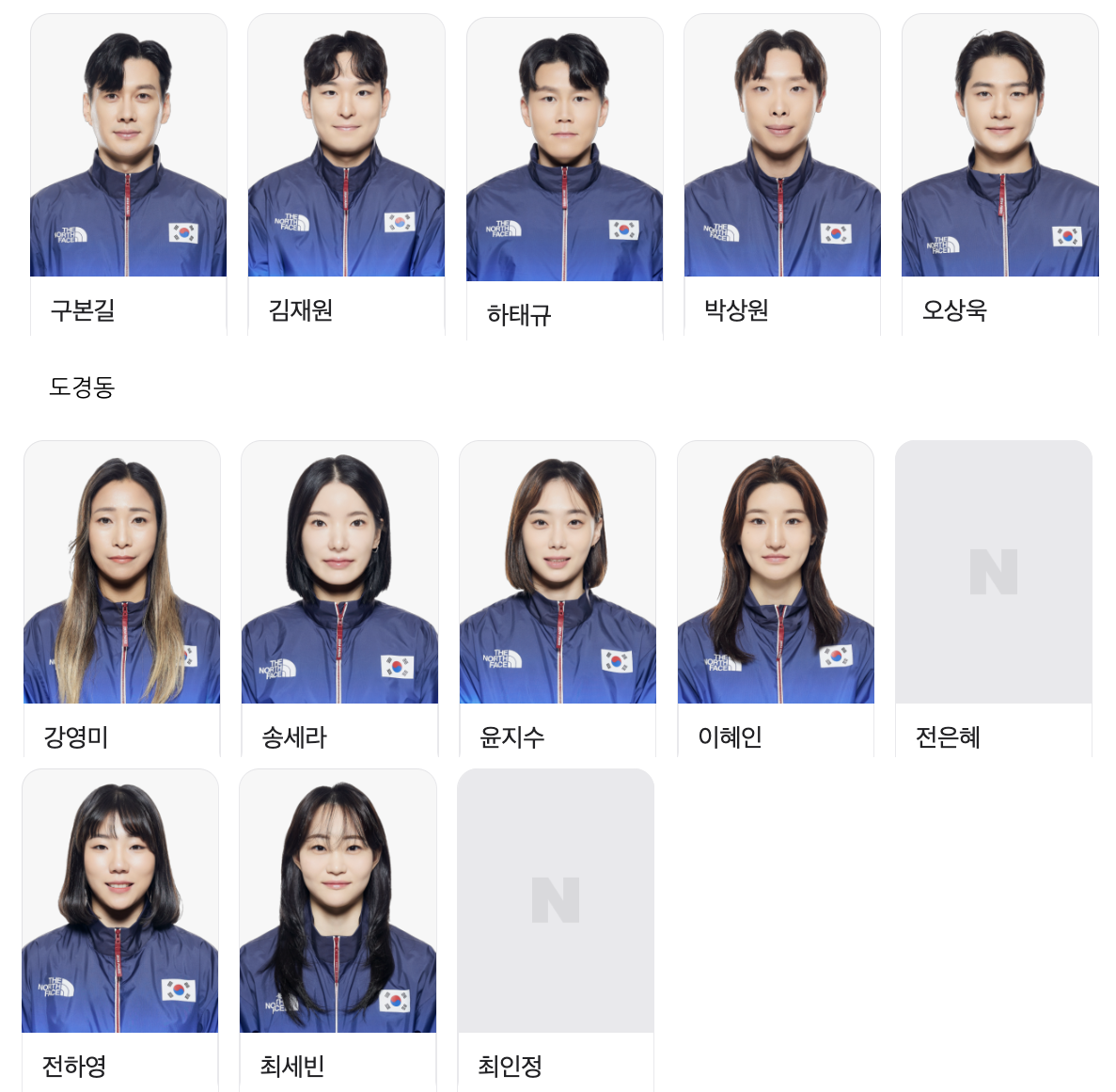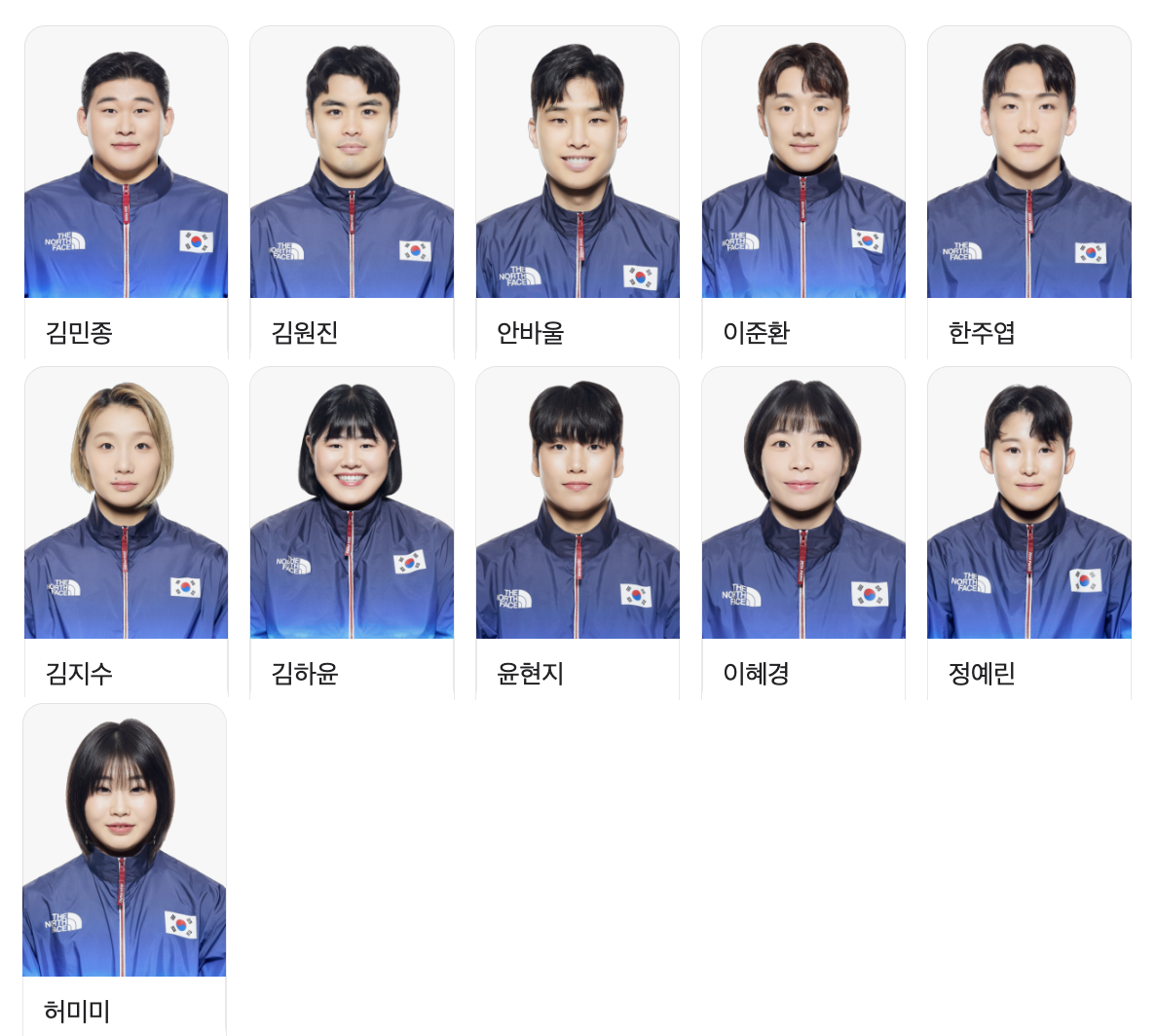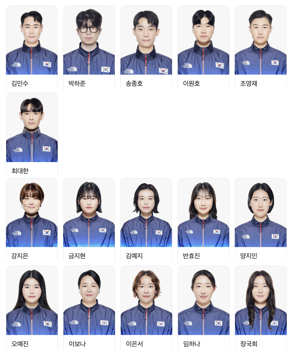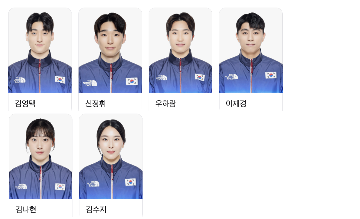 대한민국 종목별 출전선수 보기