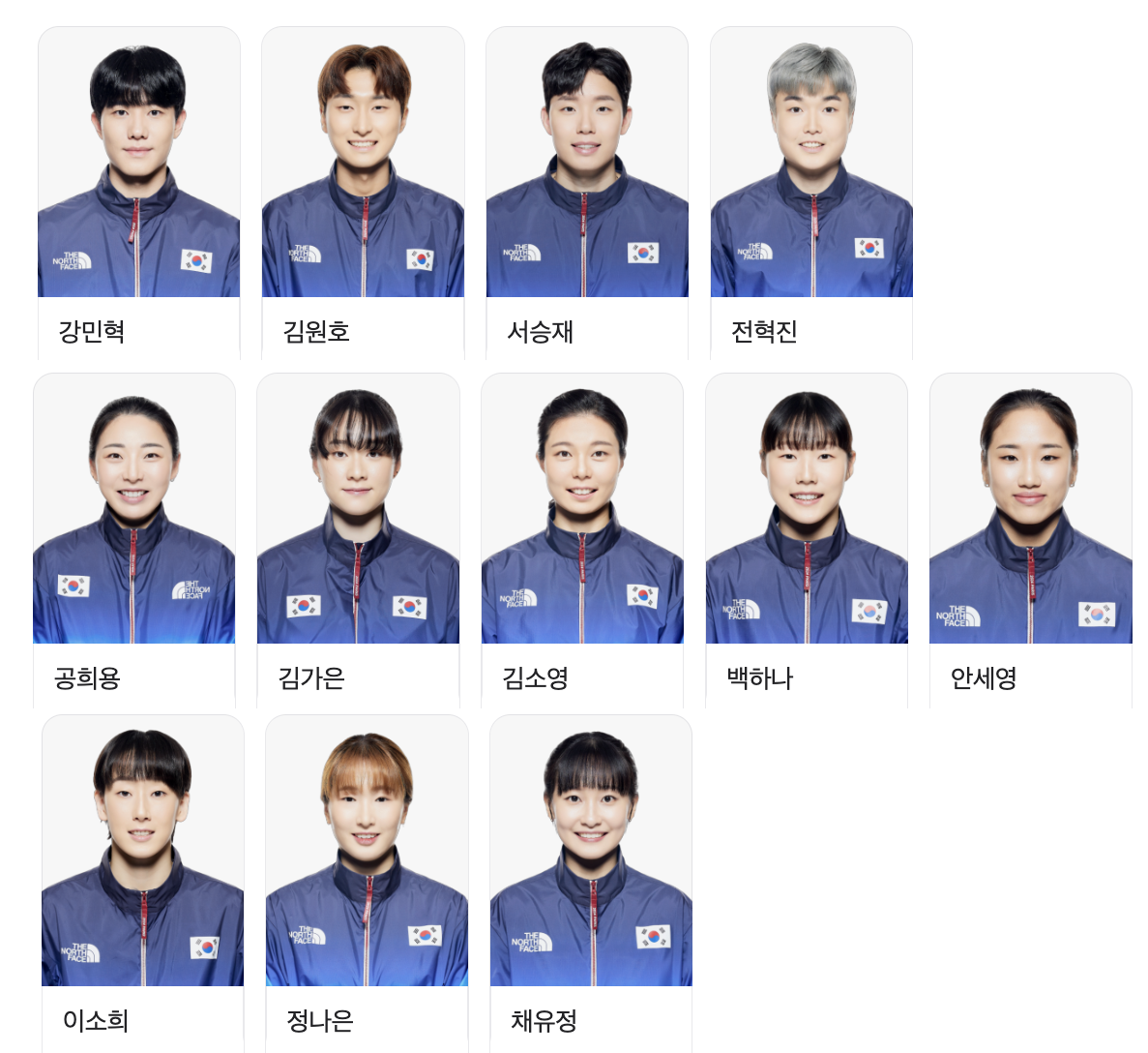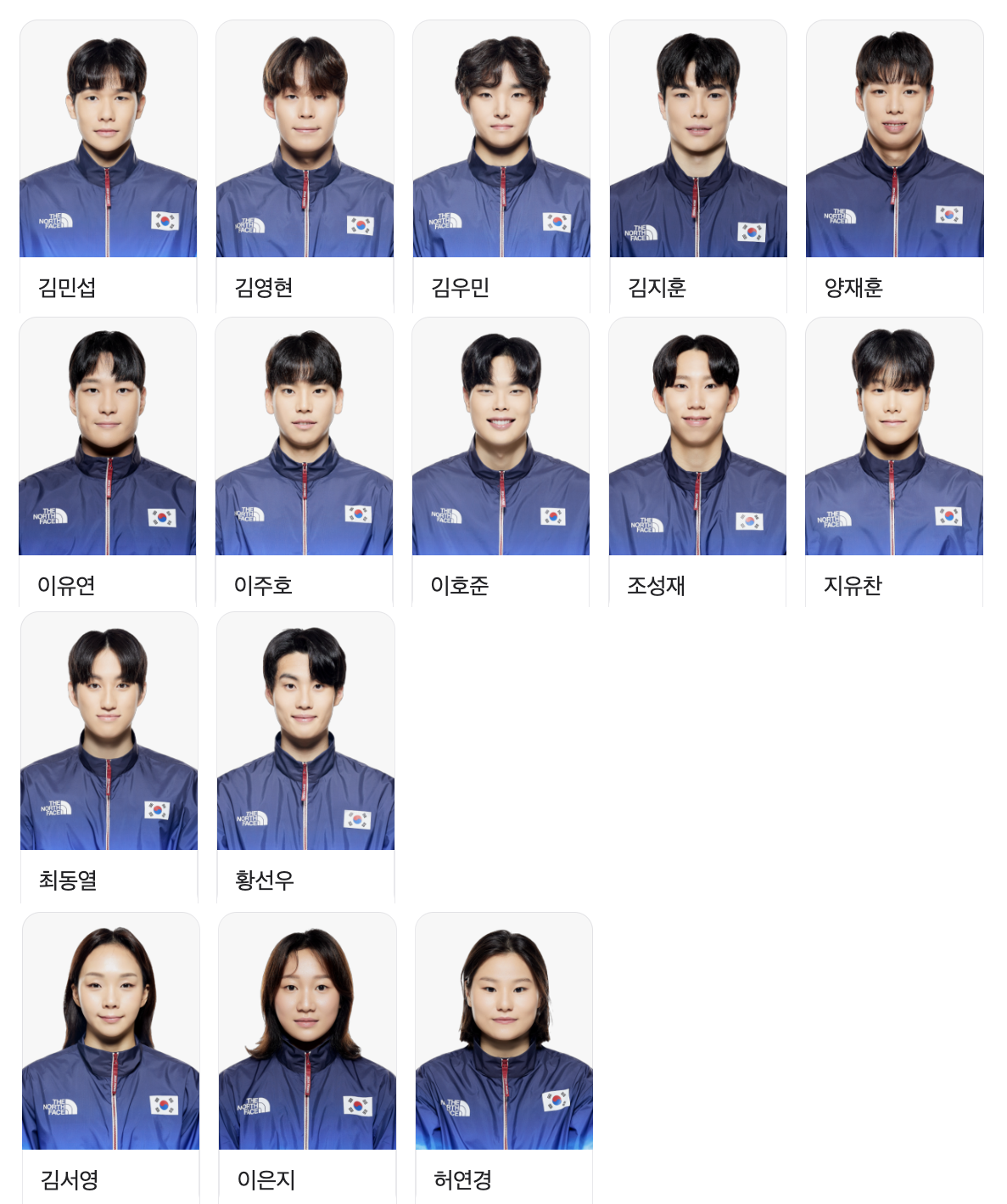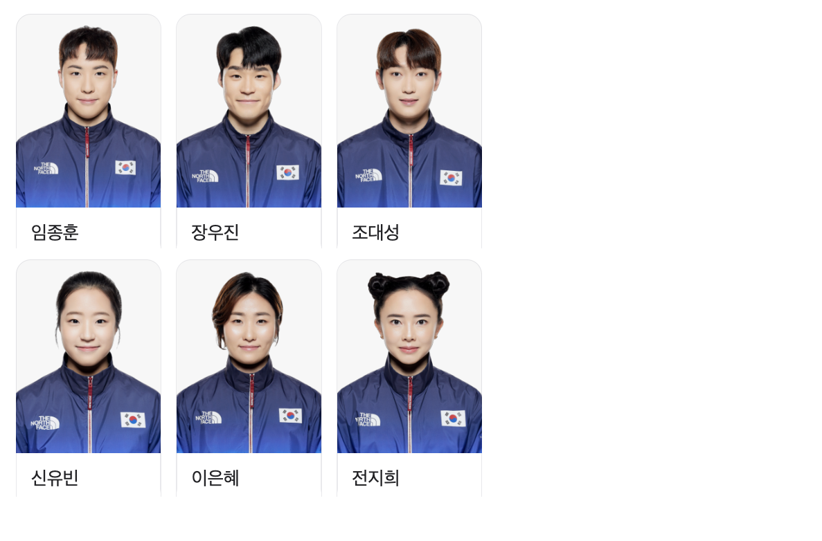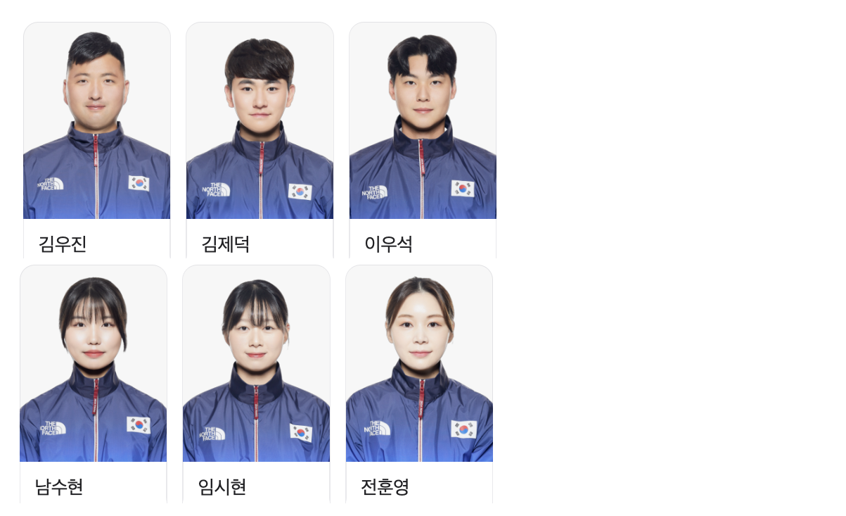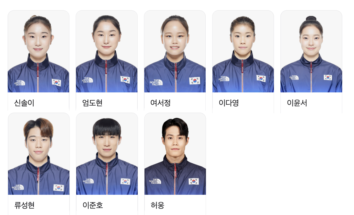 대한민국 종목별 출전선수 보기