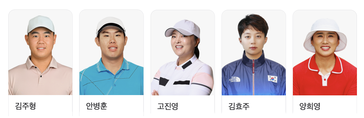 대한민국이 출전하는 종목은 골프, 근대5종, 다이빙, 레슬링, 배드민턴, 브레이킹, 사격, 사이클, 수영, 스포츠클라이밍, 승마, 아티스틱스위밍, 양궁, 역도, 요트, 유도, 육상, 체조, 탁구, 태권도, 펜싱 입니다.