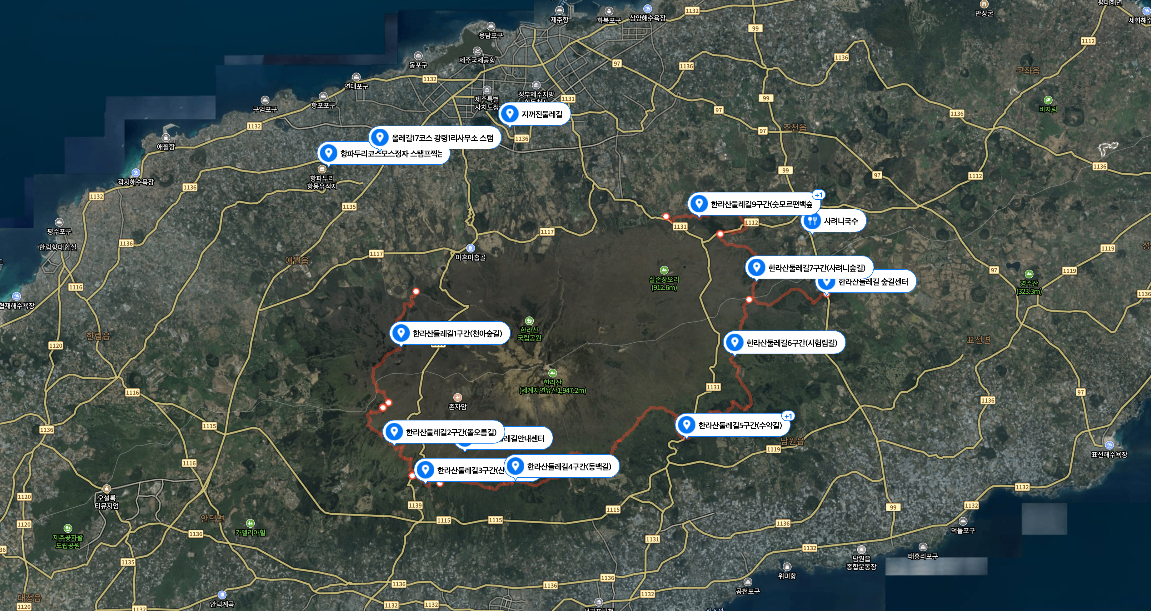 한라산 둘레길 1구간부터 9구간까지 지도입니다.