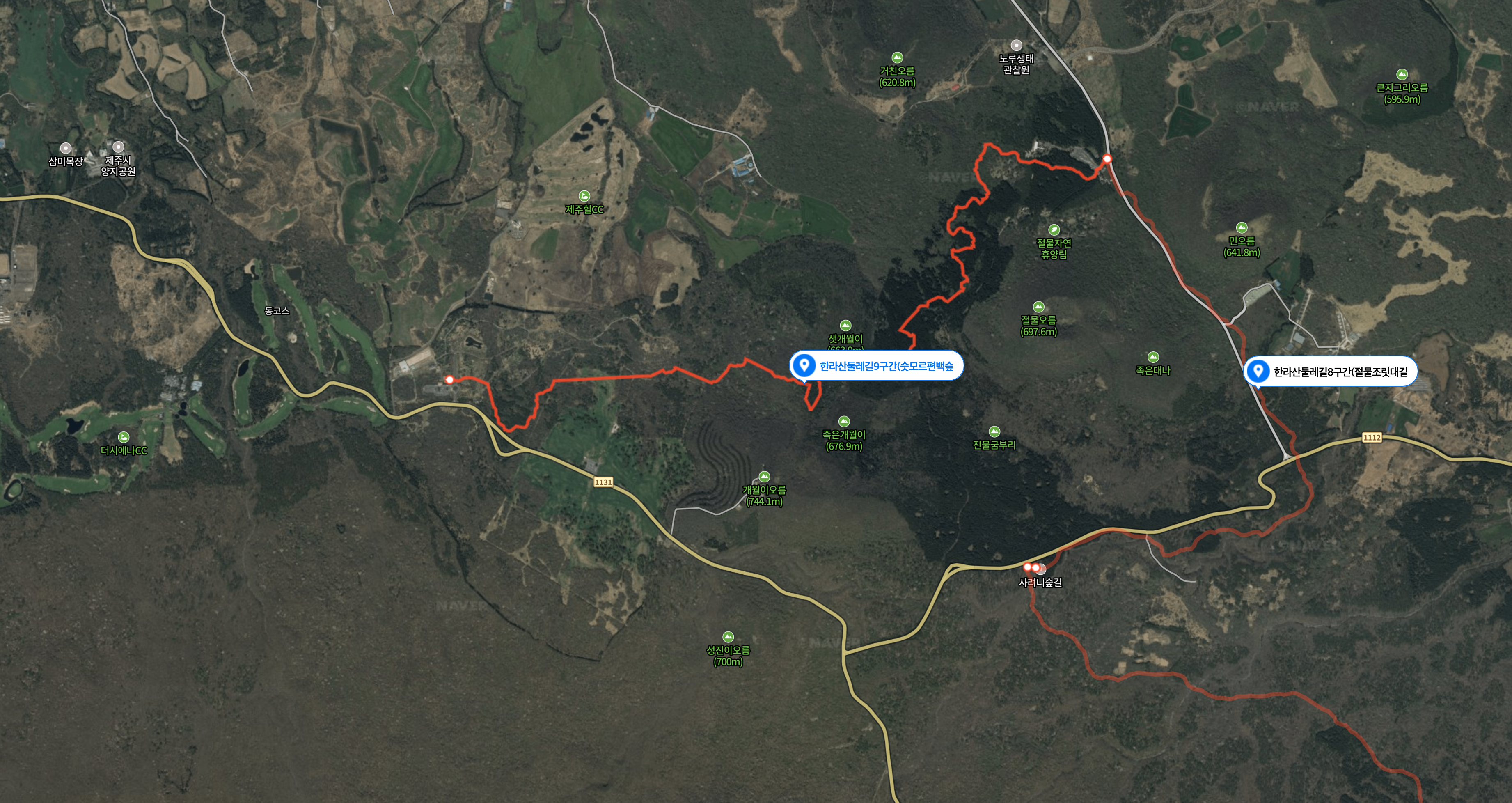 둘레길만 가실 경우 한라생태숲에서 출발하시는 것이 좋을 것 같습니다.