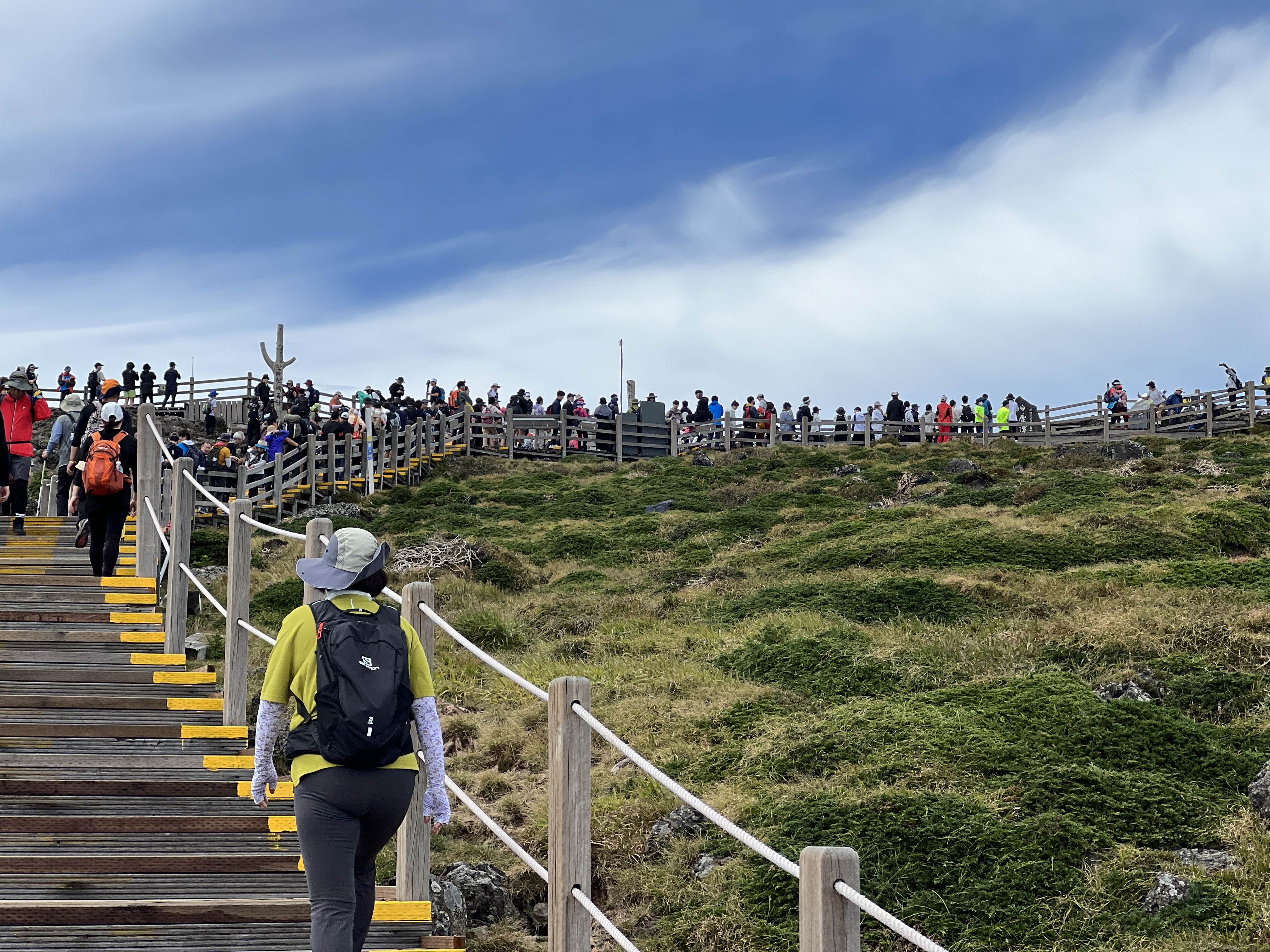 작년에는 백록담인증샷을 못찍었어요, 늦게 올라간 탓에 줄이 너무도 길었거든요. 이번에는 줄서는 사람도 없고해서 저도 기념촬영 한 컷 담아왔습니다. 늦게 도착할 시 100m가 넘는 긴 줄을 서야할 겁니다. 작년에 갔을 때 줄서있는 사람들 모습입니다.(아래사진)