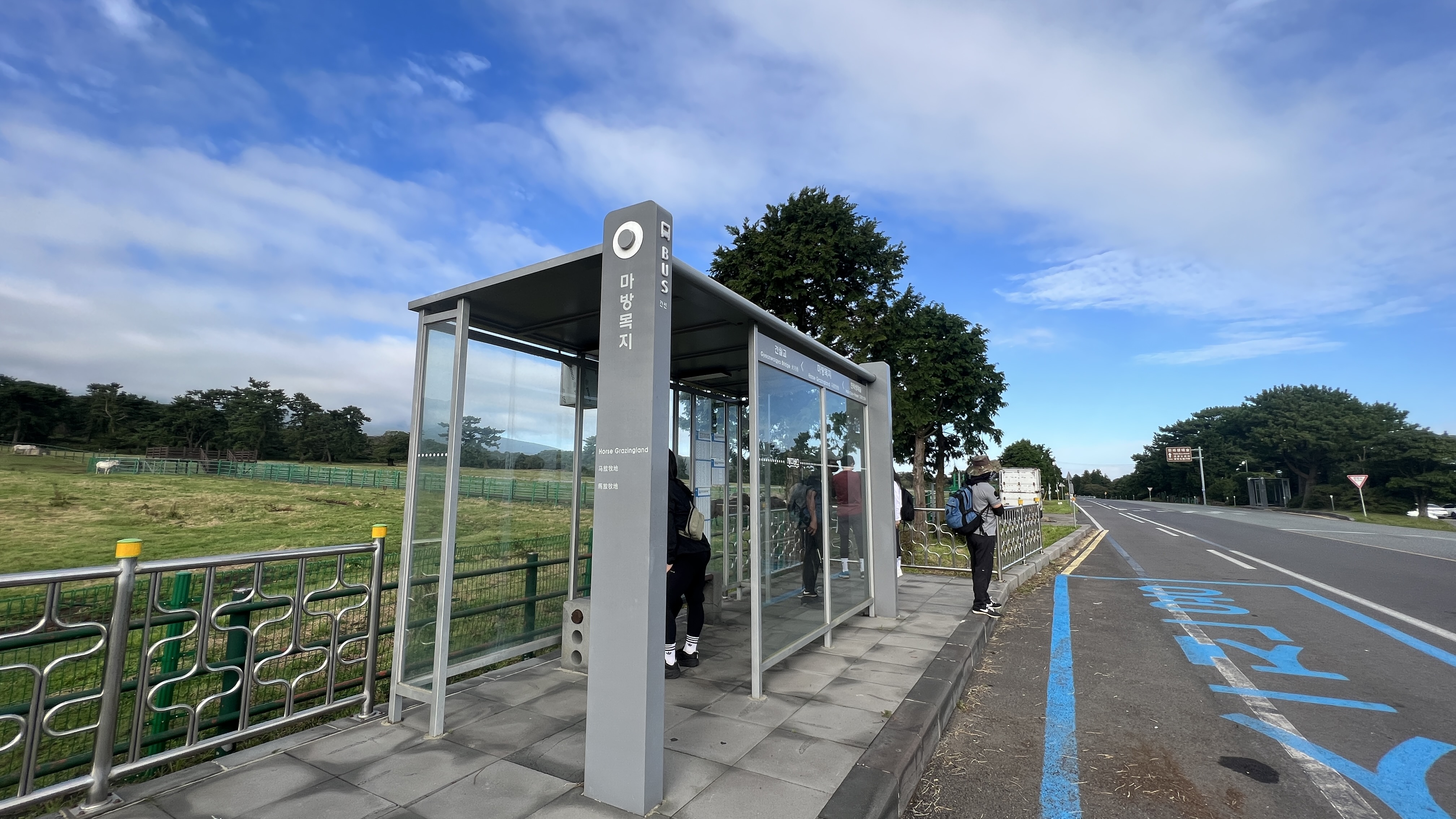 오전 4시45분에 도착하니 정말 한산하고 차량이 거의 없었습니다. 작년에는 만차여서 차량을 돌려 먼곳에 주차를 하고 버스를 이용해야만 했습니다. 버스 이용시 이렇게 하세요. 제주마방목지 관광지에는 넓은 주차장이 있습니다. 그 곳에 차를 주차하시고 바로 앞 마방목지 버스정류장에서 281번 버스를 타고 오시면 됩니다. 차로 8분거리라서 여유있게 오시려면 그 방법이 최선입니다. 마방목지에 아침부터 말들이 출동하였다면 멋진 풍경사진도 담아오실 수 있는 멋진 곳이랍니다.