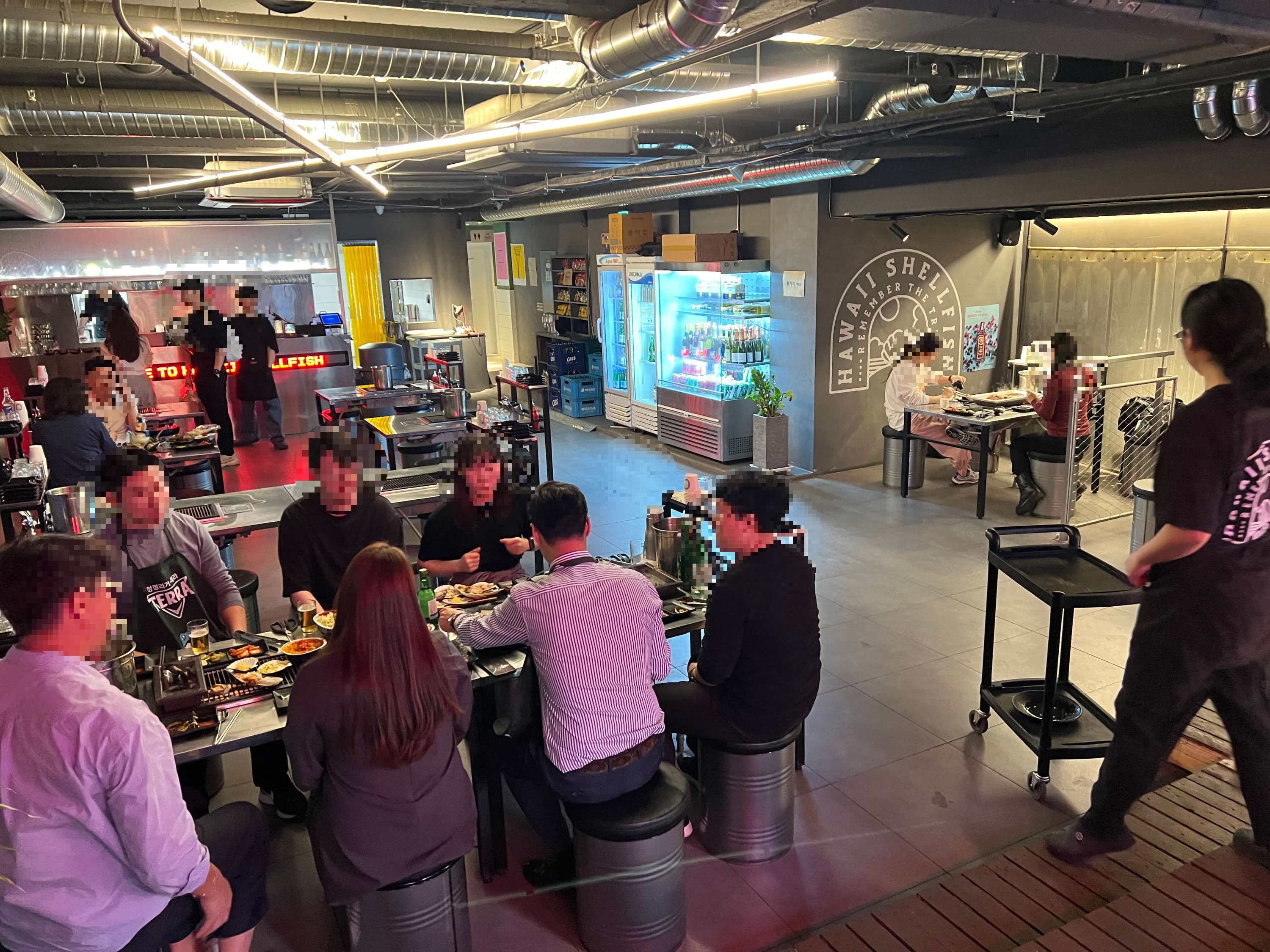 내부 홀에는 벌써 한잔을 기울이며 조개를 굽는 사람들을 볼 수 있었습니다. 공간에 여유가 있어 복잡하지는 않았습니다.