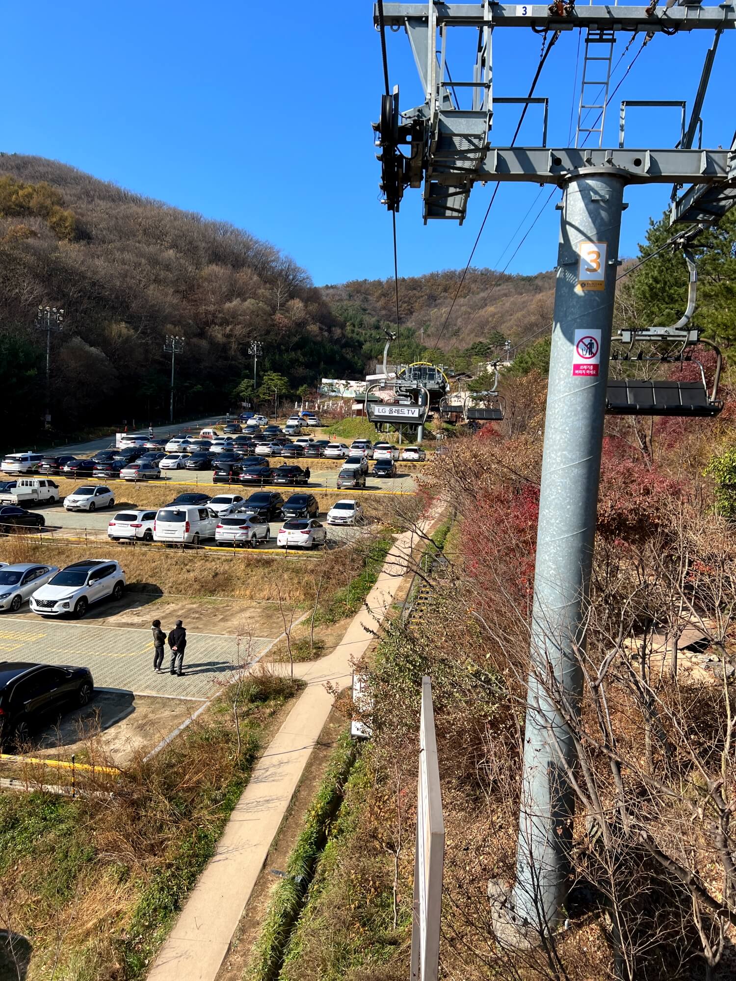 화담숲 주차장 가는 길은 곤지암리조트로 가시면 됩니다. 화담숲과 곤지암리조트가 같은 계열사인듯 합니다. 주차장을 공용으로 사용하고 있었습니다. 초보스키 슬로프하나를 주차장으로 전면 바꾸면서 화담숲 이용자들의 편의시설로 만든듯 했고 이미 그 주차장은 만차여서 저희는 그 아래쪽에 있는 주차장을 이용했습니다.