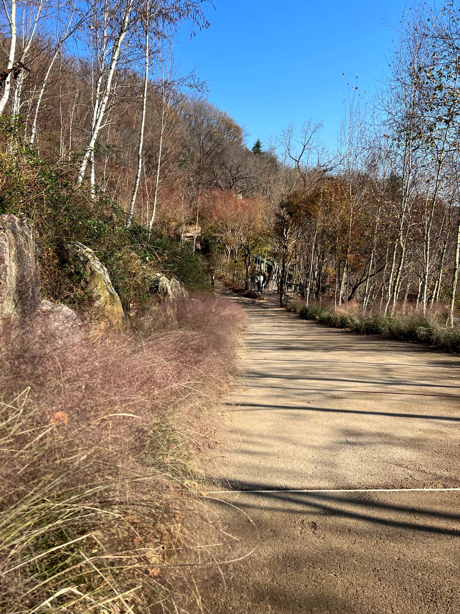 자작나무숲을 이룬 이 군락지에는 온통 자작나무만 있었습니다. 산 위에서 시작되는 화담숲은 산을 잘 가꾼 정원이라 생각하면 될 것 같아요. 산 정상까지 걸어가야 하는 코스이고 가는 길 모두가 예쁜 숲과 계곡으로 이루어져 있어 심심할 틈은 없었습니다. 다만 단풍이 없고 앙상한 나무들만 있어 아쉬울 뿐이었어요.