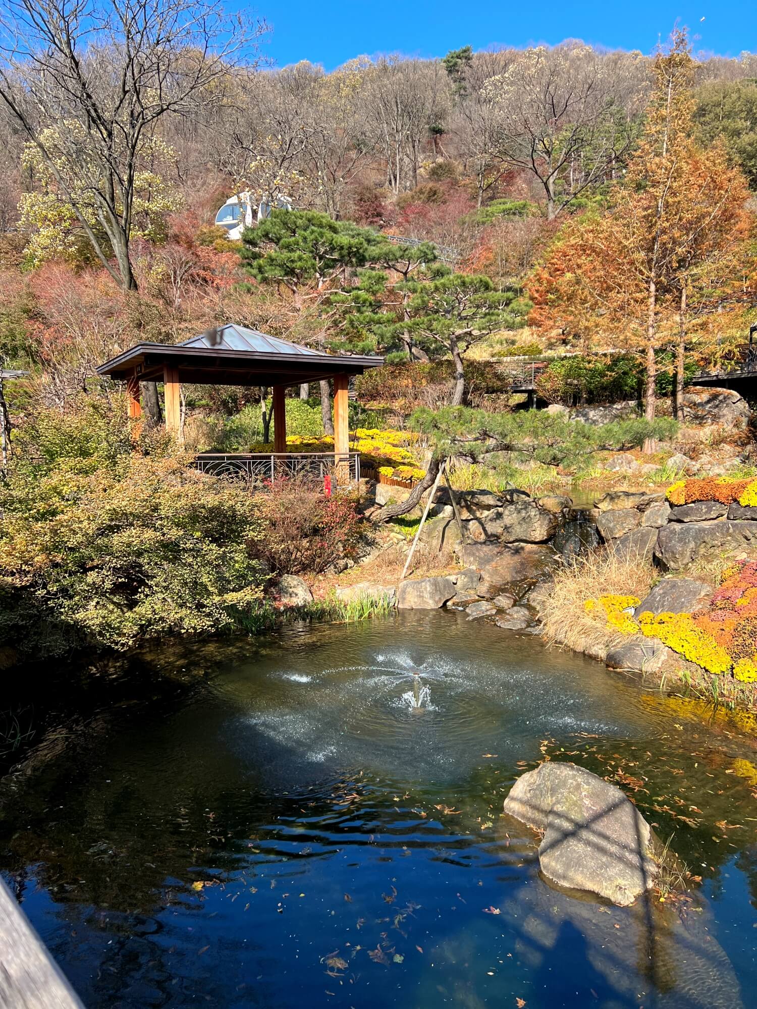 소나무가 울창한 숲에는 멋지게 자란 소나무들이 정말 많이 있었고 연못과 함께 정원이 정말 잘 가꾸어져 있었습니다. 물흐르는 계속은 멈춤 없이 계속 이어져 내리면서 작은 연못을 만들었고 물소리 또한 쉬지 않고 내려오는 내내 맑은 소리를 들을 수 있었습니다.