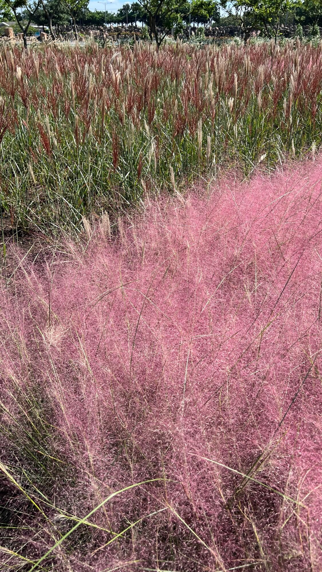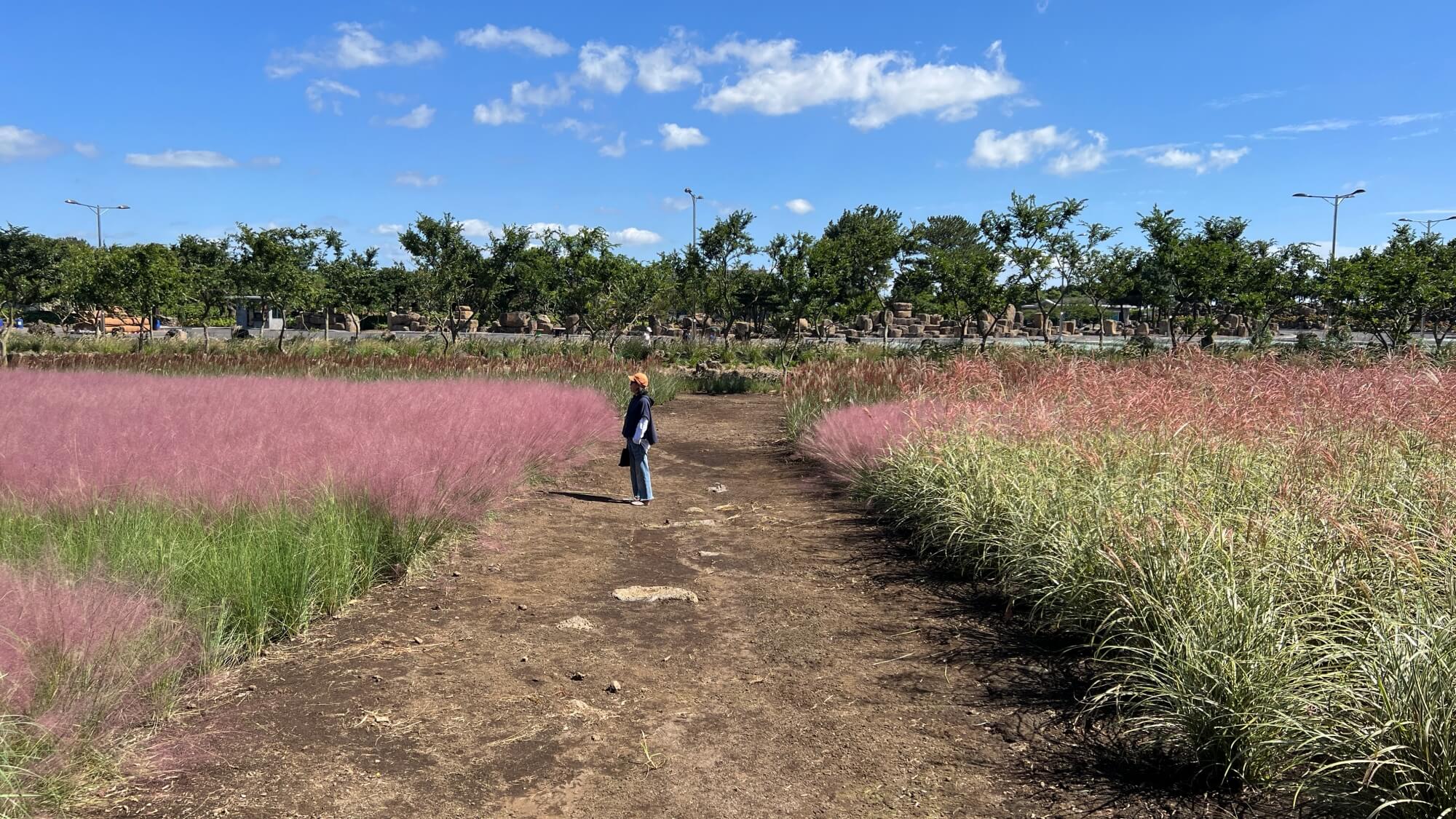 억새도 한줄 한줄 예쁘게 심어놨습니다. 갓 피어오를땐 붉은 색을 띠고 있지만 우리가 늘 보는 억새는 노란빛으로 알고 있습니다. 억새는 무르익으면 노랗게 됩니다. 핑크뮬리의 신선함이 정말 좋았습니다. 손으로 느껴지는 거칠함과 단단함이 매력적이었어요. 하나 하나 살펴보면 옅은 핑크빛이지만 이렇게 모여있으니 정말 핑크 장관을 이루게 됩니다.