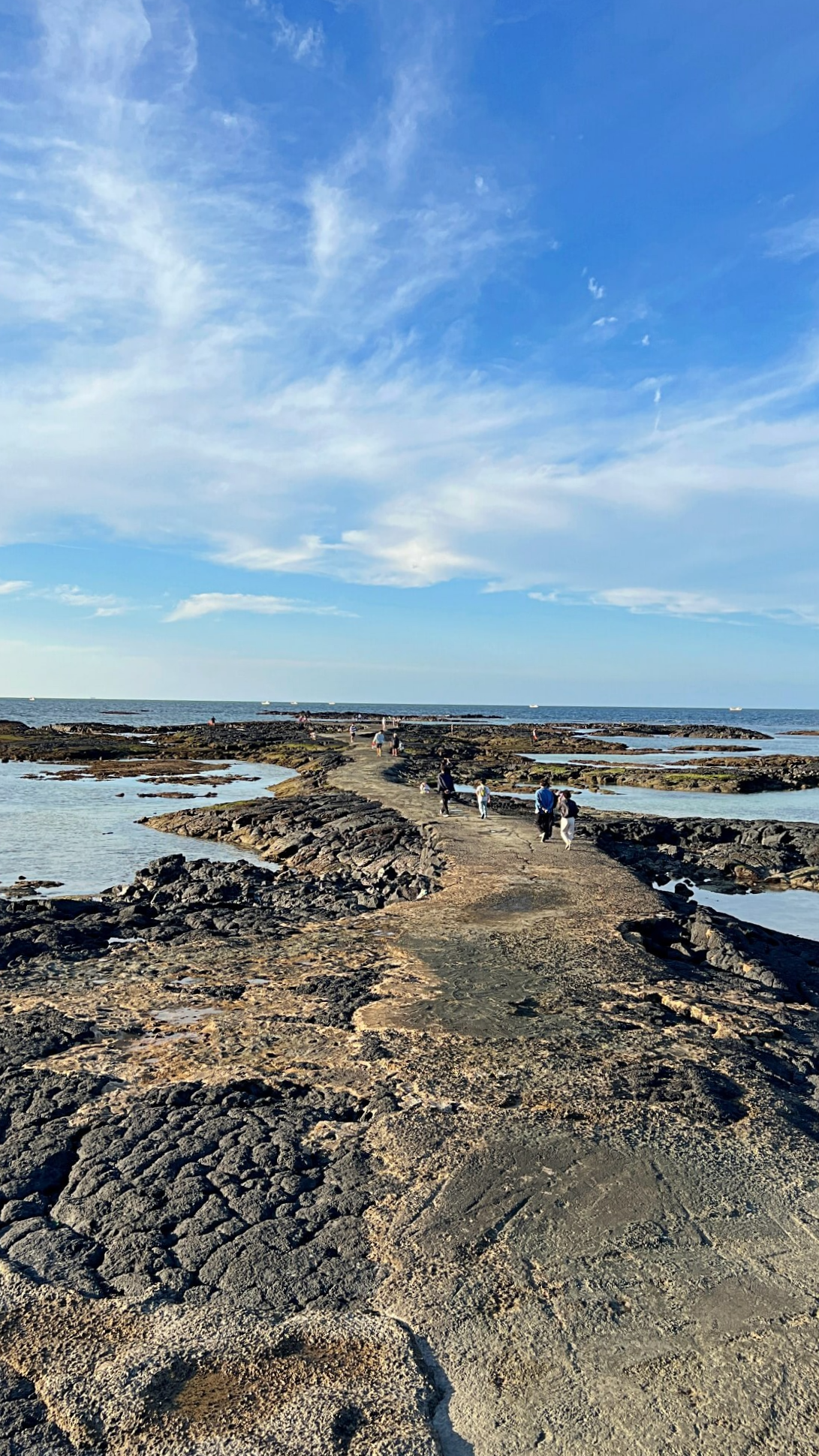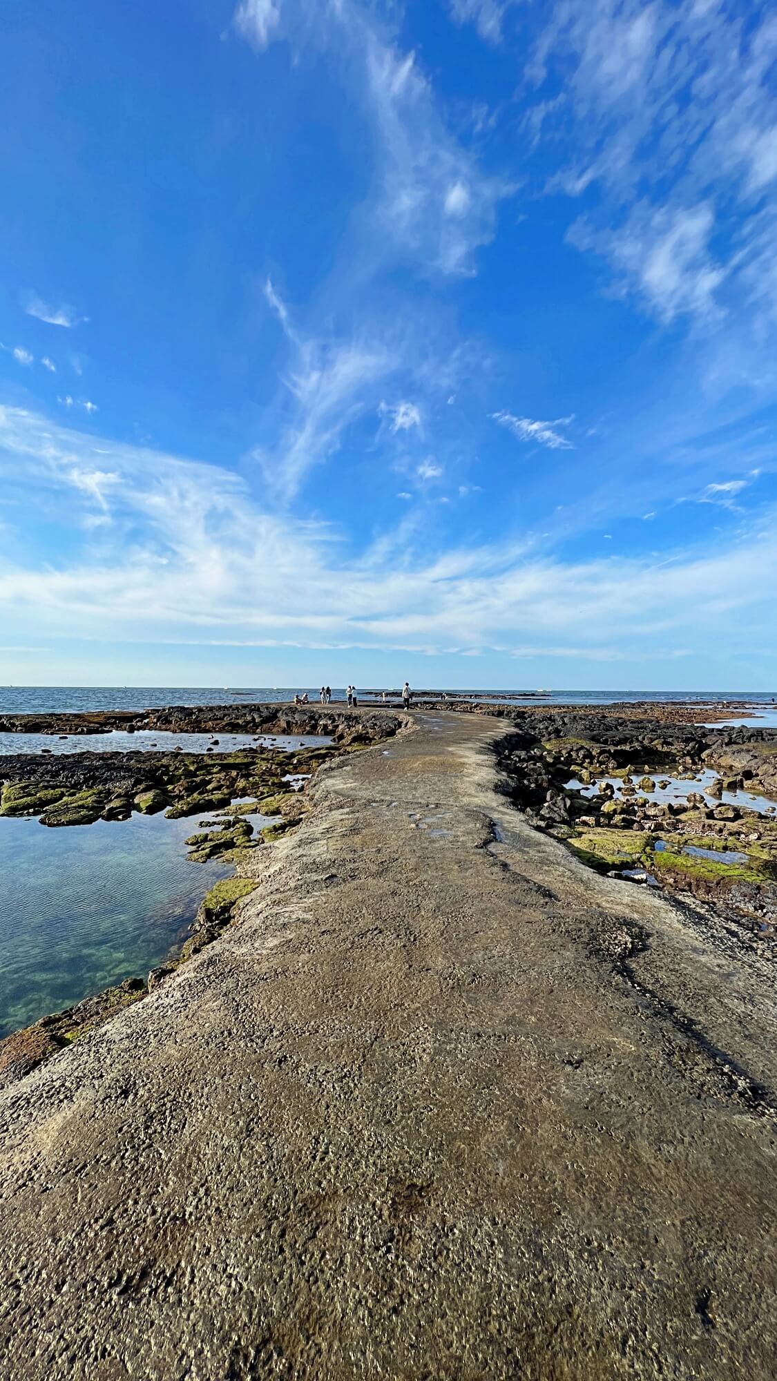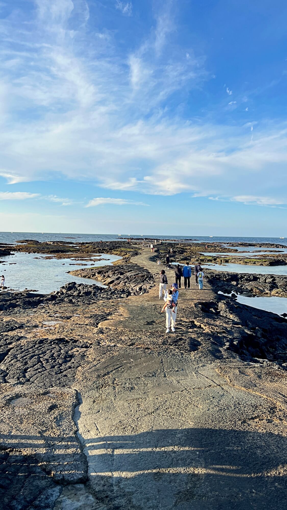 파란 하늘에 구름까지 펼쳐진 하늘 때문에 어딘가 산책나가고 싶었어요. 이미 많은 사람들이 바닷길 위로 걷고 있었습니다. 기분 좋은 바람이 솔솔 불어오는 상쾌한 날씨 속에 해는 여전히 따뜻한 빛을 내려주고 있었습니다. 겨울이 되기 전에 산책해 봐야할 곳이 바로 여기 '김녕바닷길'인 것 같아요.