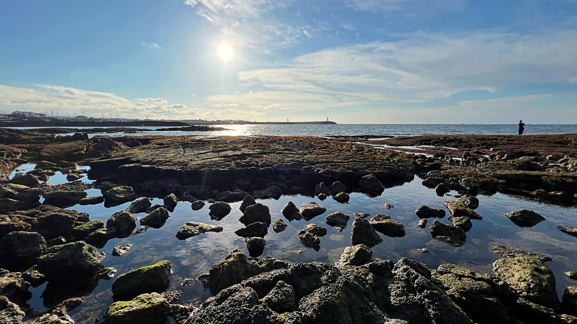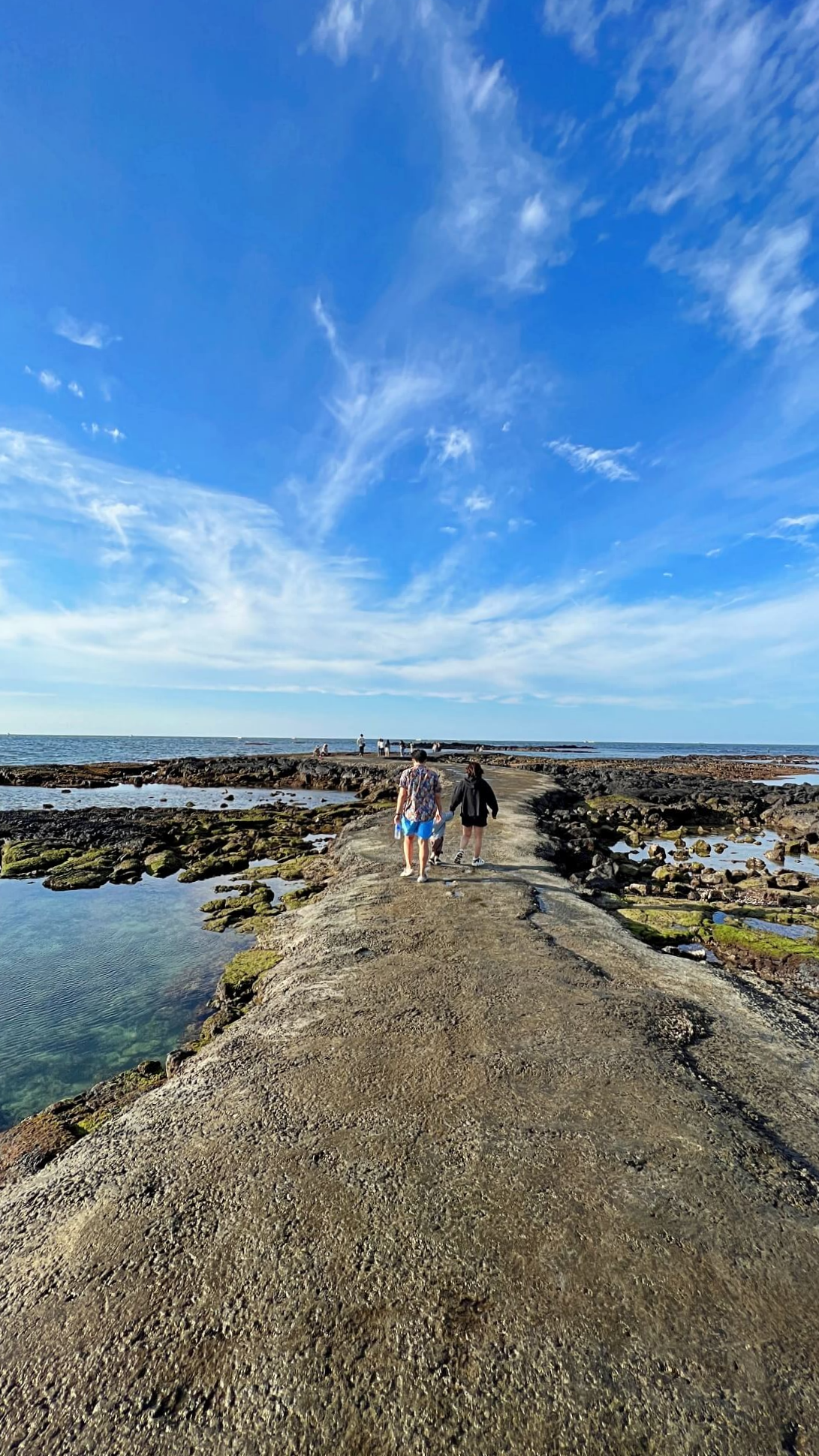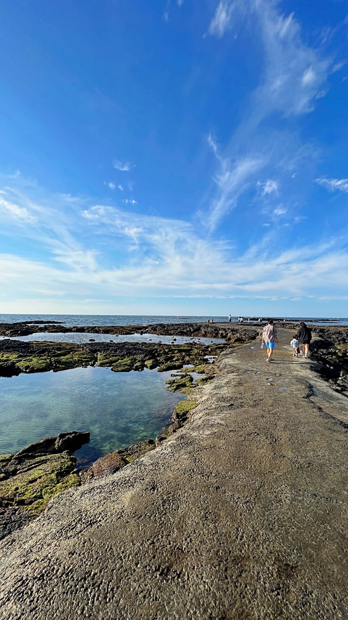파란 하늘에 구름까지 펼쳐진 하늘 때문에 어딘가 산책나가고 싶었어요. 이미 많은 사람들이 바닷길 위로 걷고 있었습니다. 기분 좋은 바람이 솔솔 불어오는 상쾌한 날씨 속에 해는 여전히 따뜻한 빛을 내려주고 있었습니다. 겨울이 되기 전에 산책해 봐야할 곳이 바로 여기 '김녕바닷길'인 것 같아요.