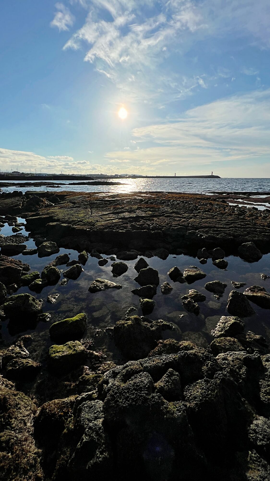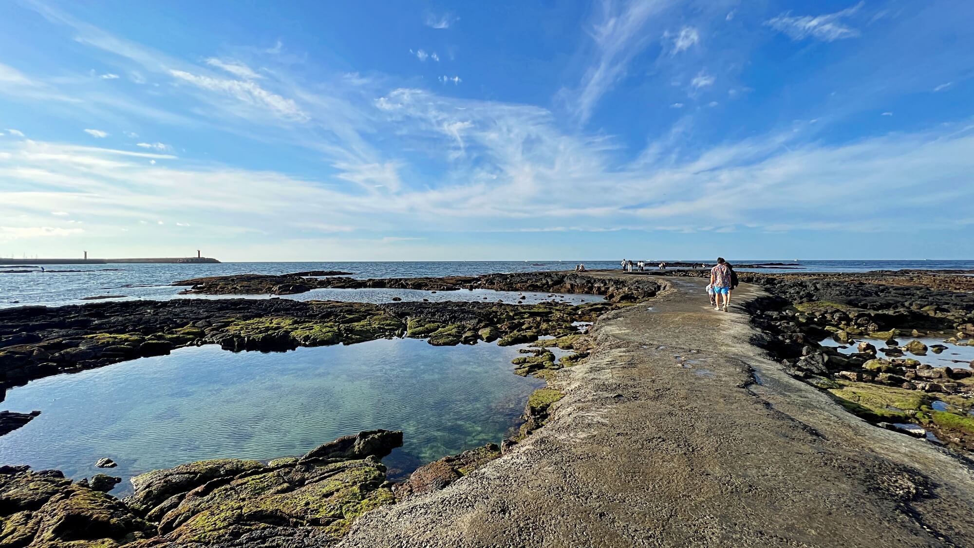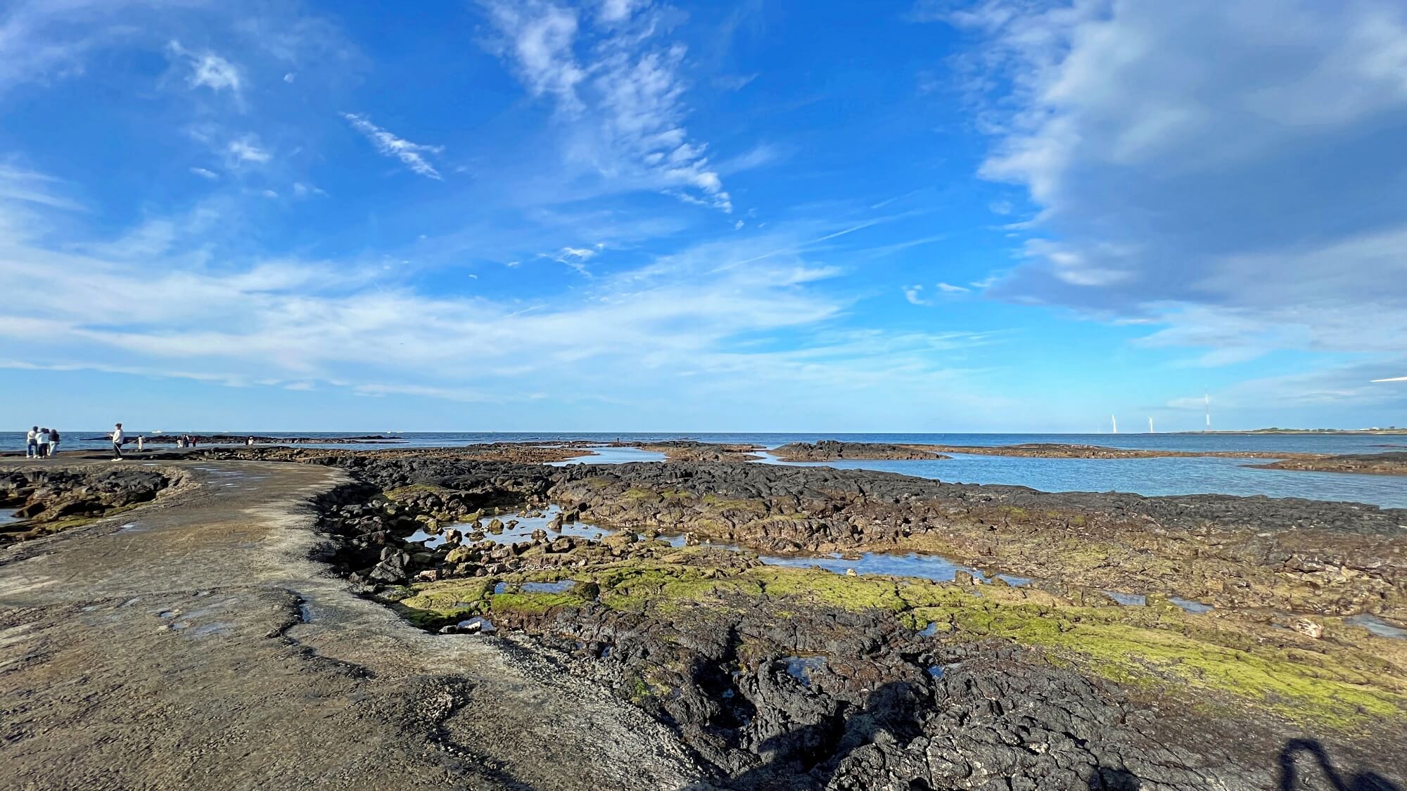 파란 하늘에 구름까지 펼쳐진 하늘 때문에 어딘가 산책나가고 싶었어요. 이미 많은 사람들이 바닷길 위로 걷고 있었습니다. 기분 좋은 바람이 솔솔 불어오는 상쾌한 날씨 속에 해는 여전히 따뜻한 빛을 내려주고 있었습니다. 겨울이 되기 전에 산책해 봐야할 곳이 바로 여기 '김녕바닷길'인 것 같아요.