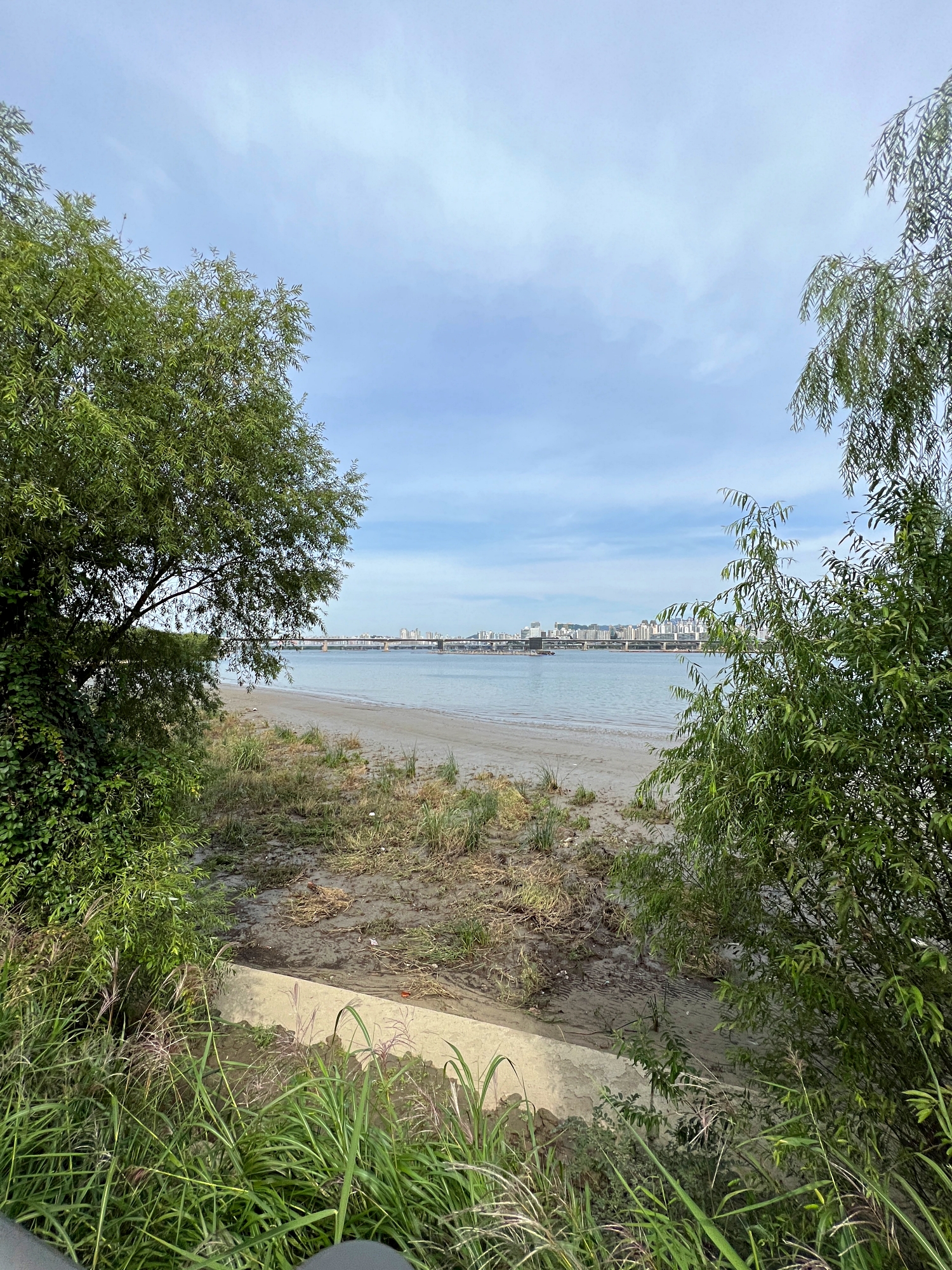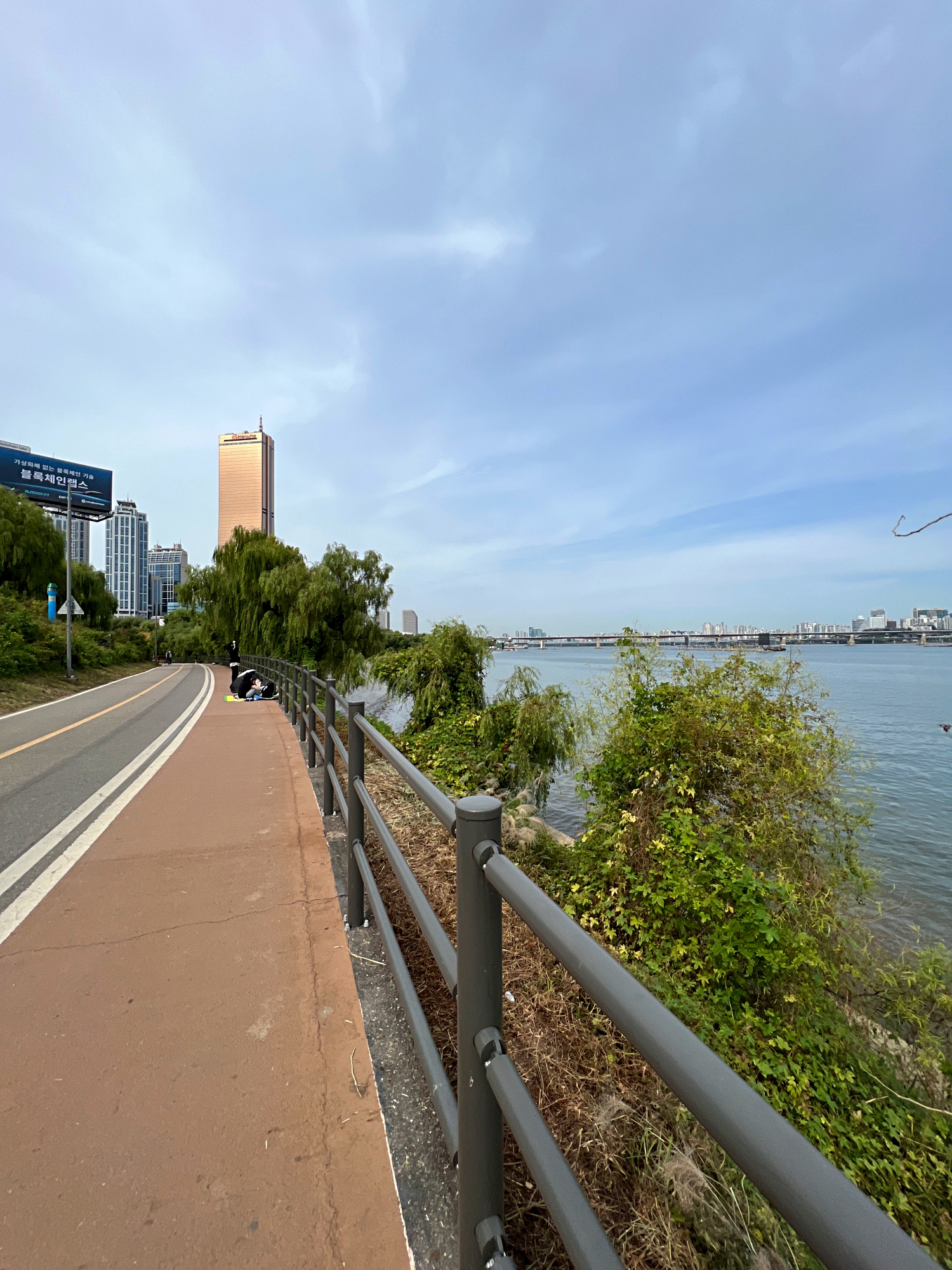 분명 그 장소는 맞는 듯한데 10년도 더 된 포인트라 나무가 무성하게 숲을 이루고 있었습니다. 거기까진 생각못했었네요. 10년이라는 세월은 강산을 바꾼다는데 샛강과 한강이 만나는 그 곳은 나무가 너무 많아 다른 곳이 되버렸습니다. 너무도 생생히 기억나는 그 멋진 곳에는 유유히 자전거를 타는 사람과 한가로히 사진찍는 사람이 함께 담긴 예쁜 사진이었어요.
