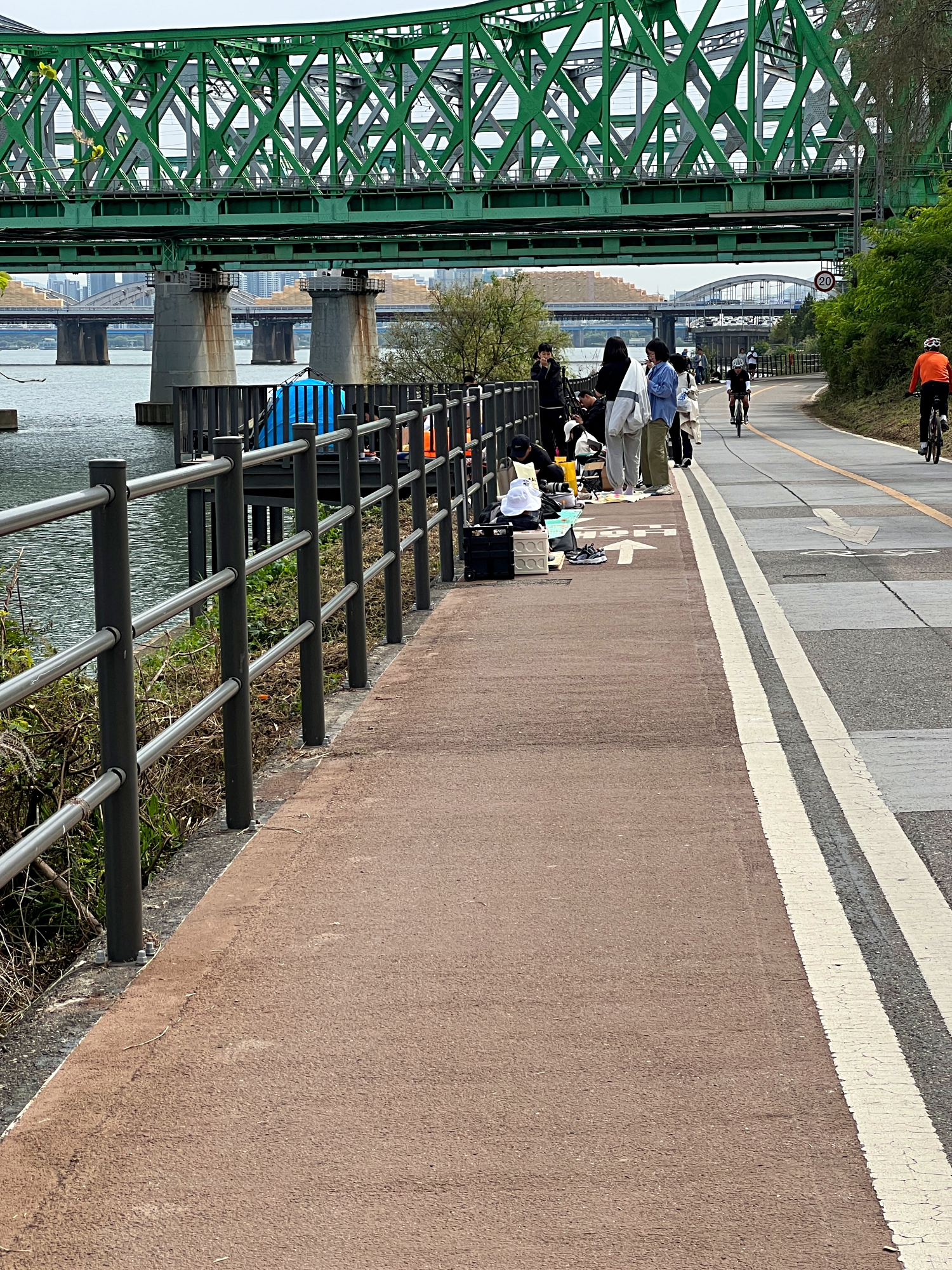 제가 찾던 화각은 바로 여기였습니다. 저기 앞에 나무들이 없고 샛강이 그대로 이어지는 모습이었어요. 앞에 자전거를 세워놓고 사진찍는 사람들 풍경도 함께 담겼던, 그 사진 찾아보면 어딘가에 있을텐데 아직 못찾았네요. 어쨌거나 당연히 있을 줄 알았던 그 모습은 세월의 흐름을 느끼게끔 많이 달라져 있었습니다.