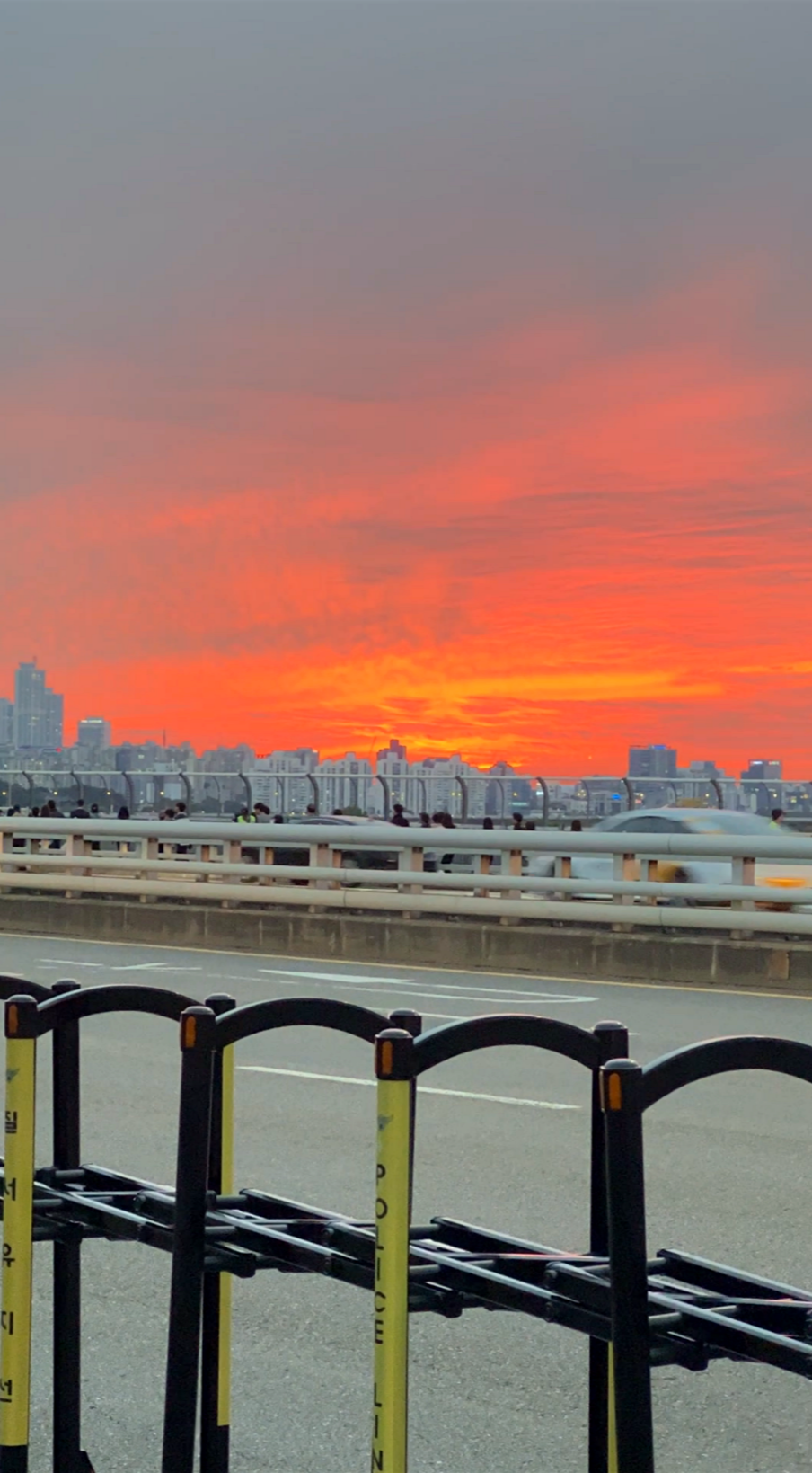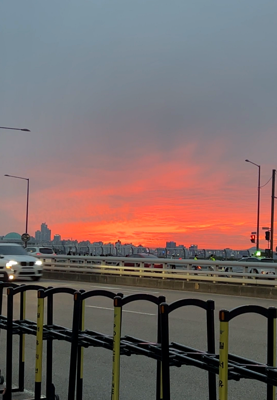 저는 집에서 마포대교가 가까워 걸어왔습니다. 이미 많은 사람들이 대중교통을 이용해 마포대교로 올라가고 있었어요. 마침 노을까지 아름답게 물드는 장관을 보게됐습니다.