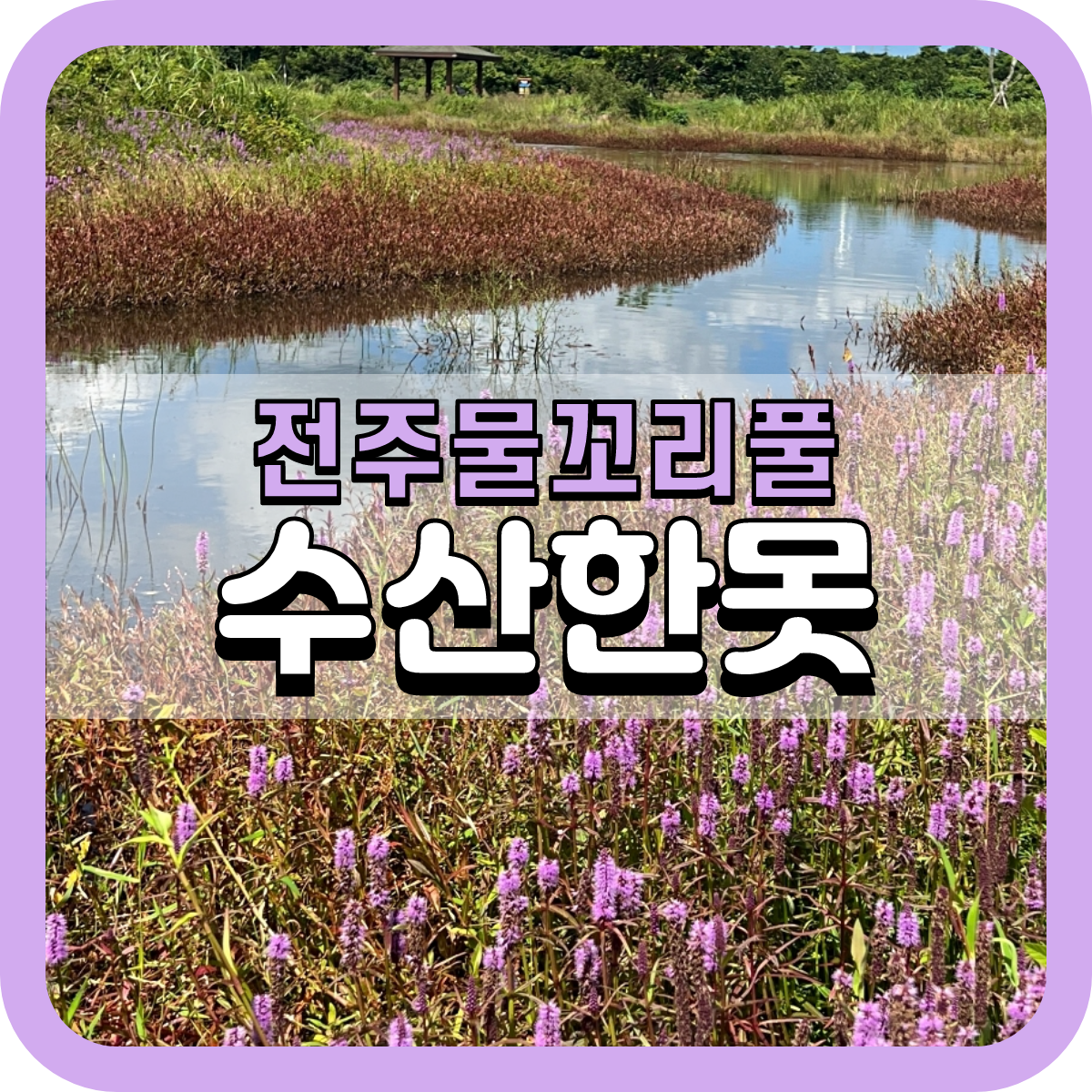수산한못은 과거 수산정(벌판, 초원)의 마장의 말과 소에게 물을 먹이고 주민들의 식수로 사용해왔던 곳이라고 합니다. '한'은 크다의 뜻으로 수산평에 있는 큰 못이라는 의미입니다. 못이 정말 크게 펼쳐져 있고 전주물꼬리풀과 함께 아름다운 못의 모습을 보여주고 있는 지금입니다. 살랑 살랑 불어오는 바람과 함께 산책다녀오기에도 좋은 날씨입니다.