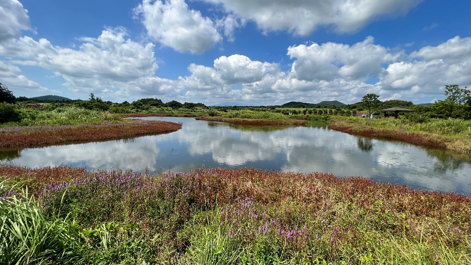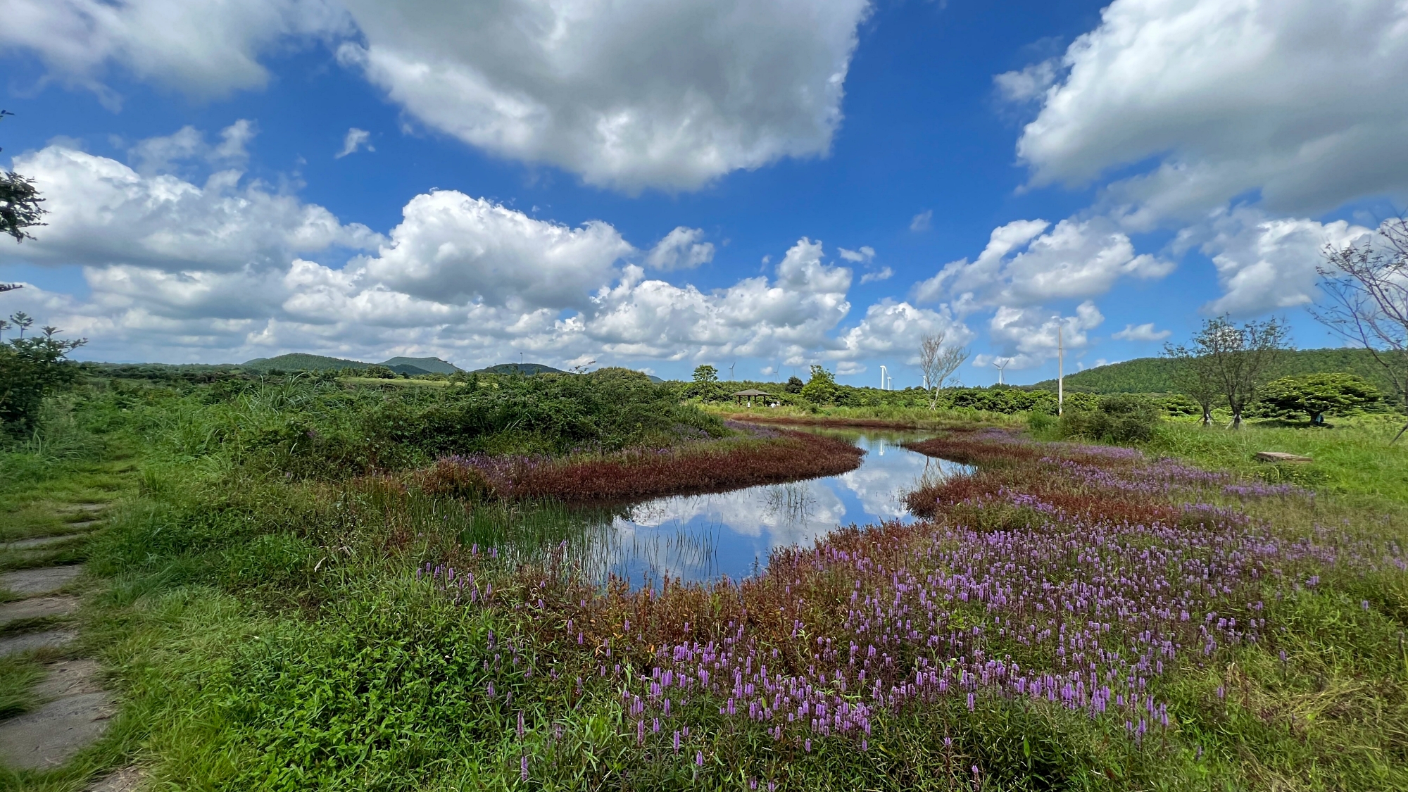 이런 제주의 여름과 가을 사이에 꼭 다녀와야할 곳이 있습니다. 바로 성산읍 수산리에 위치한 수산한못입니다. 수산리에 있는 큰 못이라는 뜻인데요. 제주를 그렇게 돌아다니면서도 이렇게 아름다운 못이 있다는 걸 처음 알게 됐습니다.